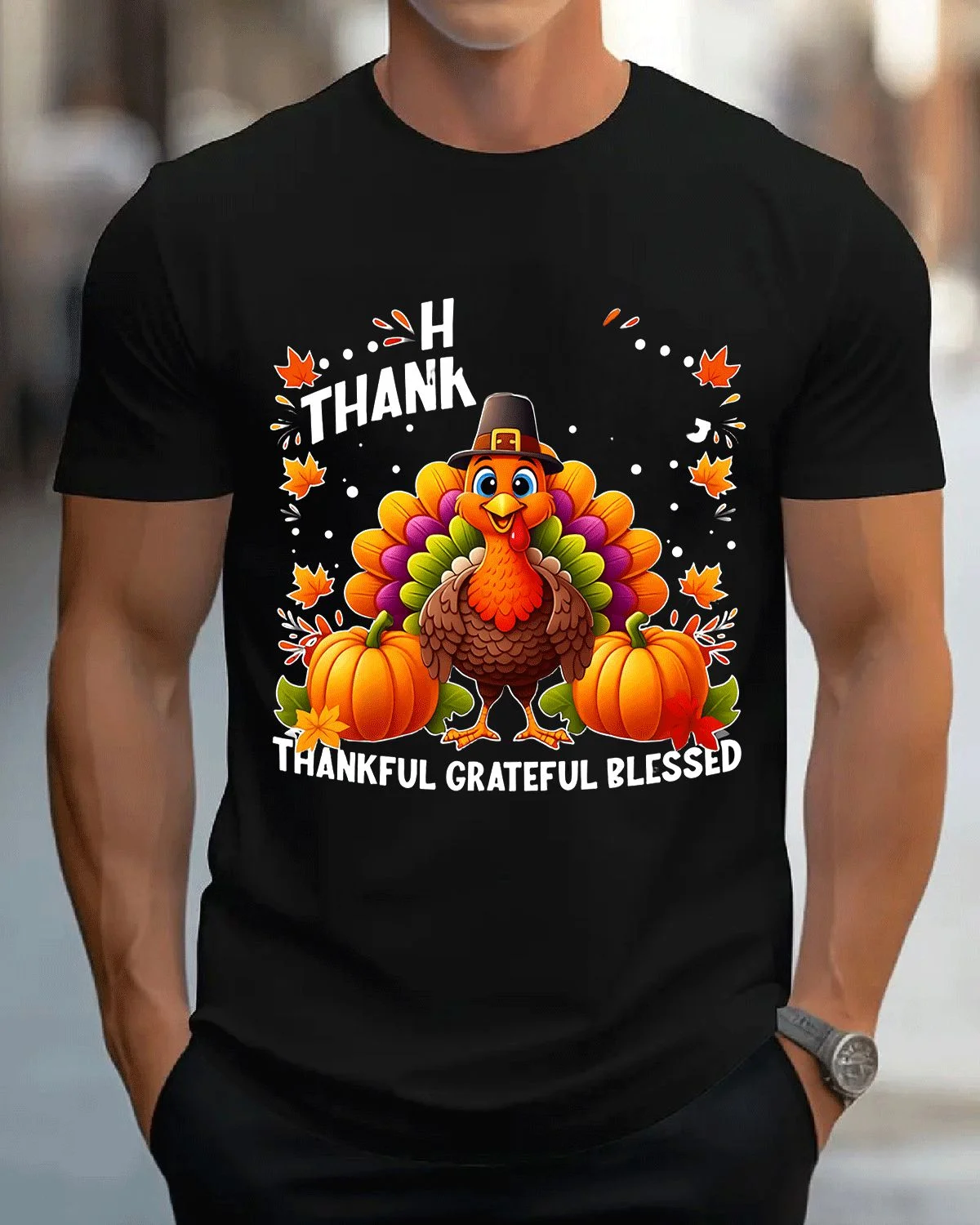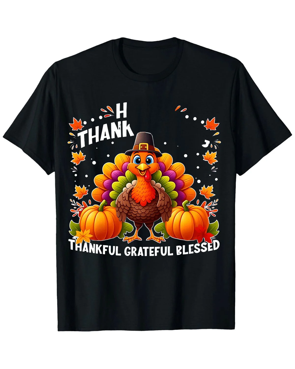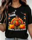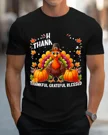Thankful Grateful Blessed Turkey Thanksgiving Summer Cotton Graphic T Shirt-Casual Vintage,Short Sleeve,Soft Fabric,Comfortable Fit