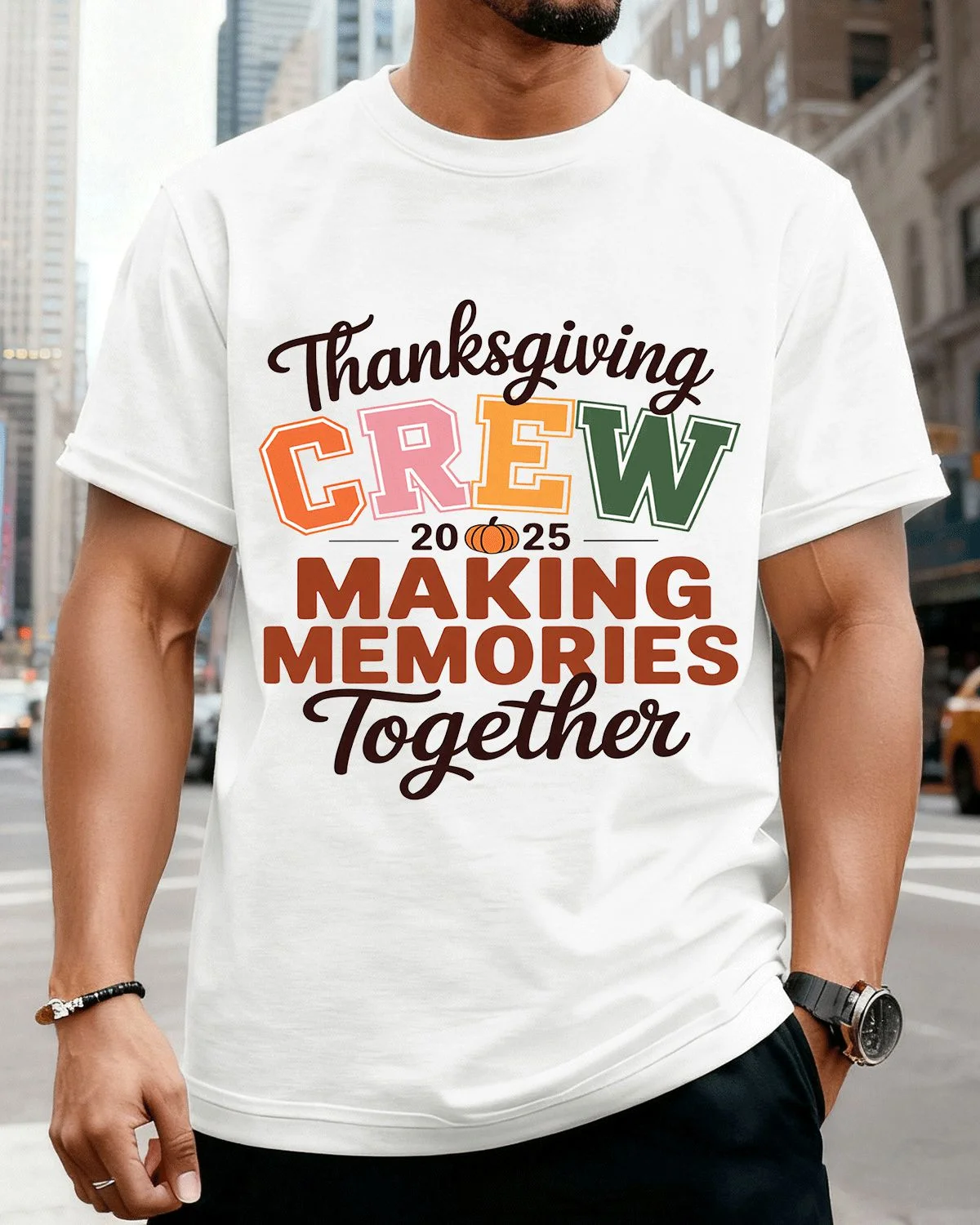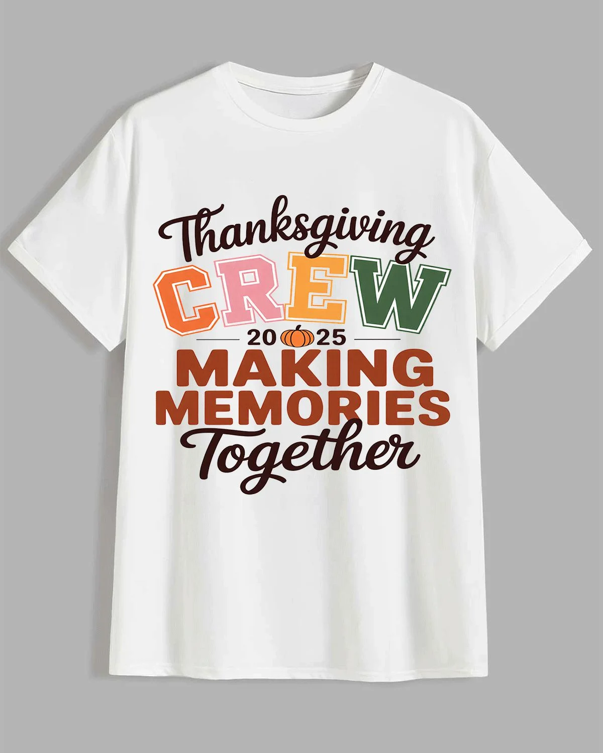Thanksgiving Crew 2025 Making Memories Together Summer Cotton Graphic T Shirt - Casual Vintage,Short Sleeve,Soft Fabric,Comfortable Fit
