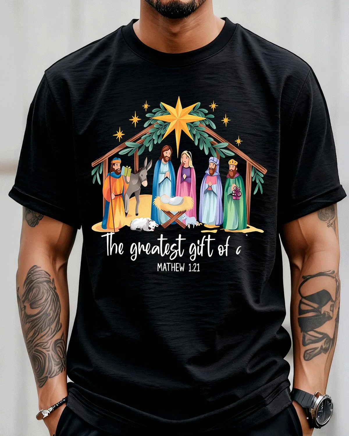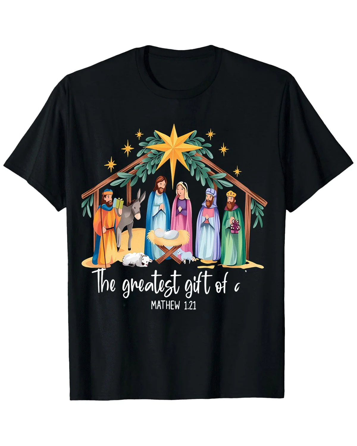 The Greatest Gift of Christmas Matthew 121 Summer Cotton Graphic T Shirt-Casual Vintage,Short Sleeve,Soft Fabric,Comfortable Fit