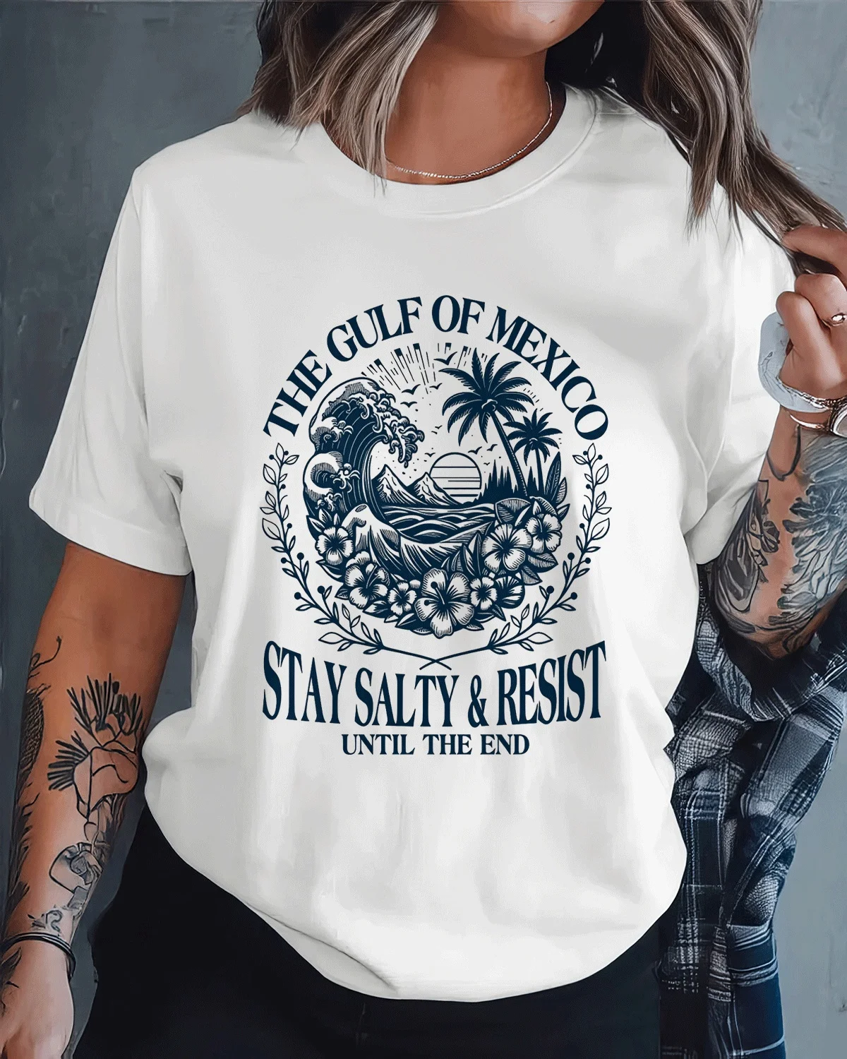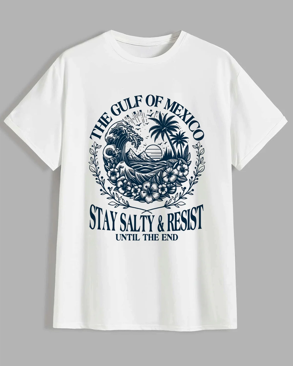 The Gulf of Mexico Stay Salty and Resist Summer Cotton Graphic T Shirt-Vintage Retro,Short Sleeve,Soft Fabric,Comfortable Fit