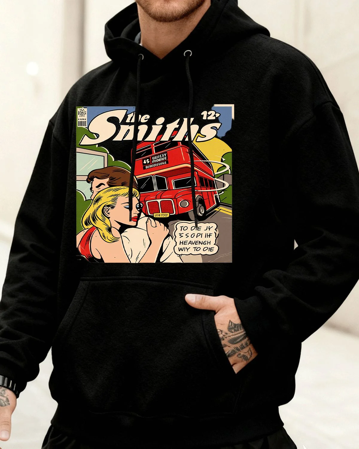 The Smiths Red London Bus Cozy Graphic Hoodie for Men and Women - Vintage Retro, Long Sleeve, Soft Fabric, Comfortable Fit