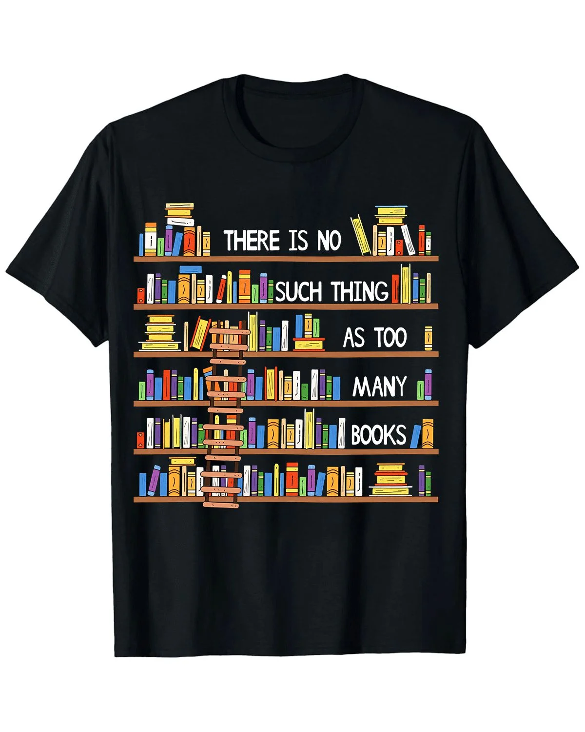 There Is No Such Thing As Too Many Books Summer Cotton Graphic T Shirt-Casual Vintage,Short Sleeve,Soft Fabric,Comfortable Fit
