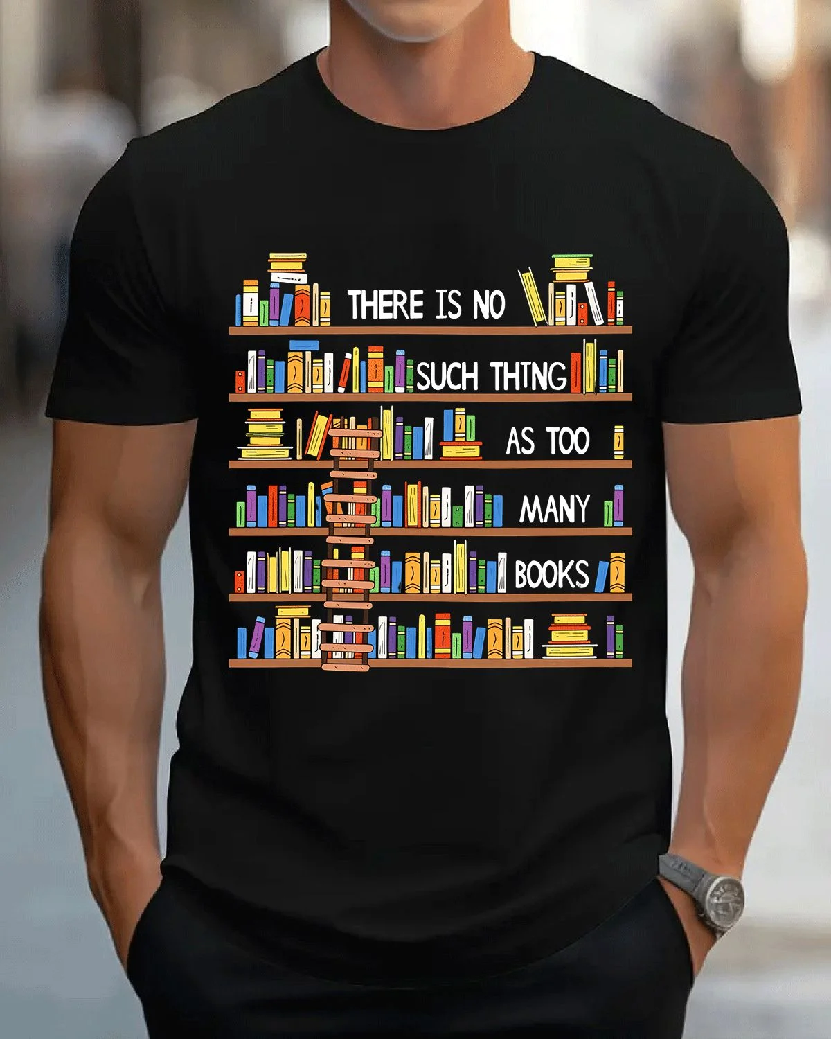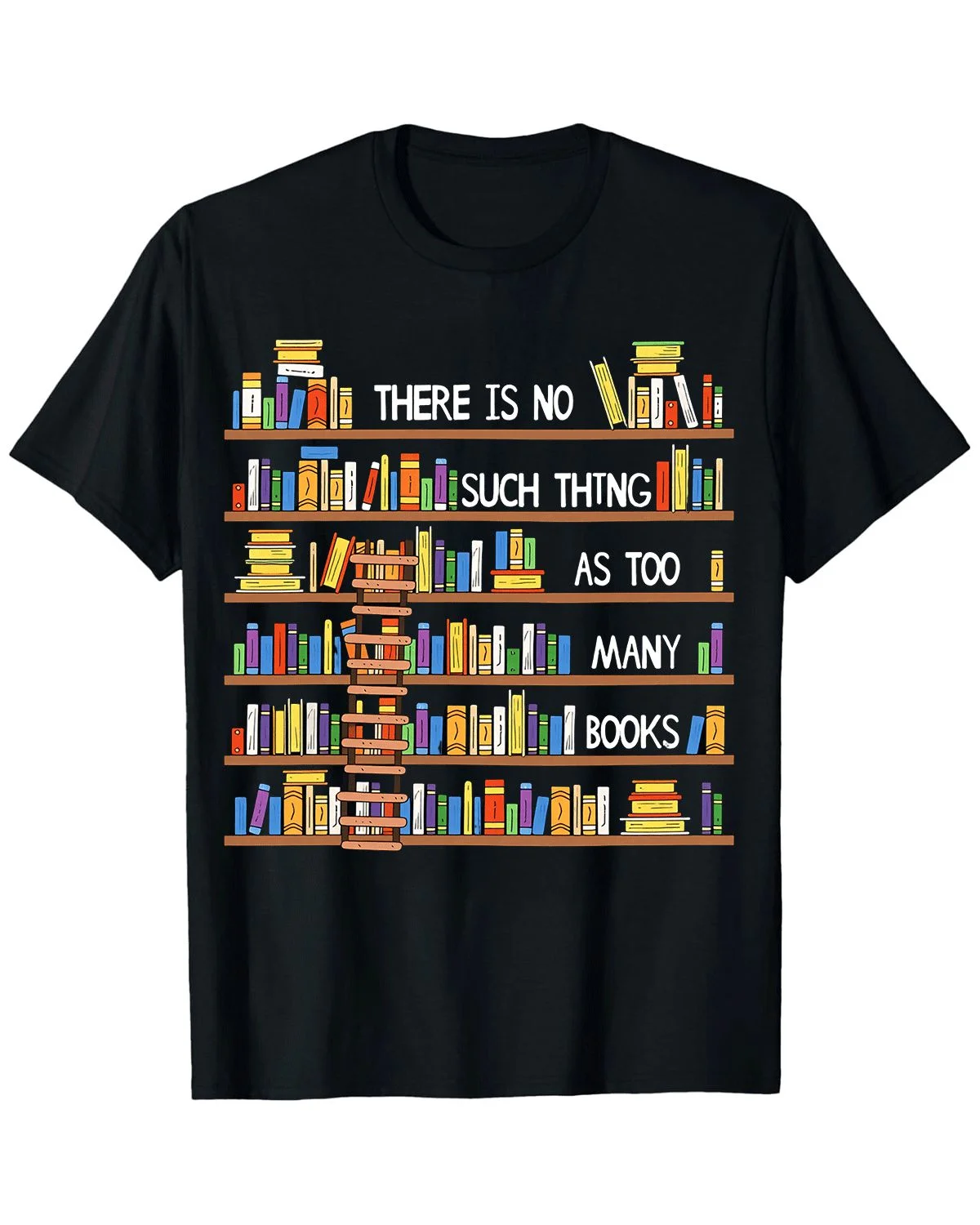 There Is No Such Thing As Too Many Books Summer Cotton Graphic T Shirt-Casual Vintage,Short Sleeve,Soft Fabric,Comfortable Fit