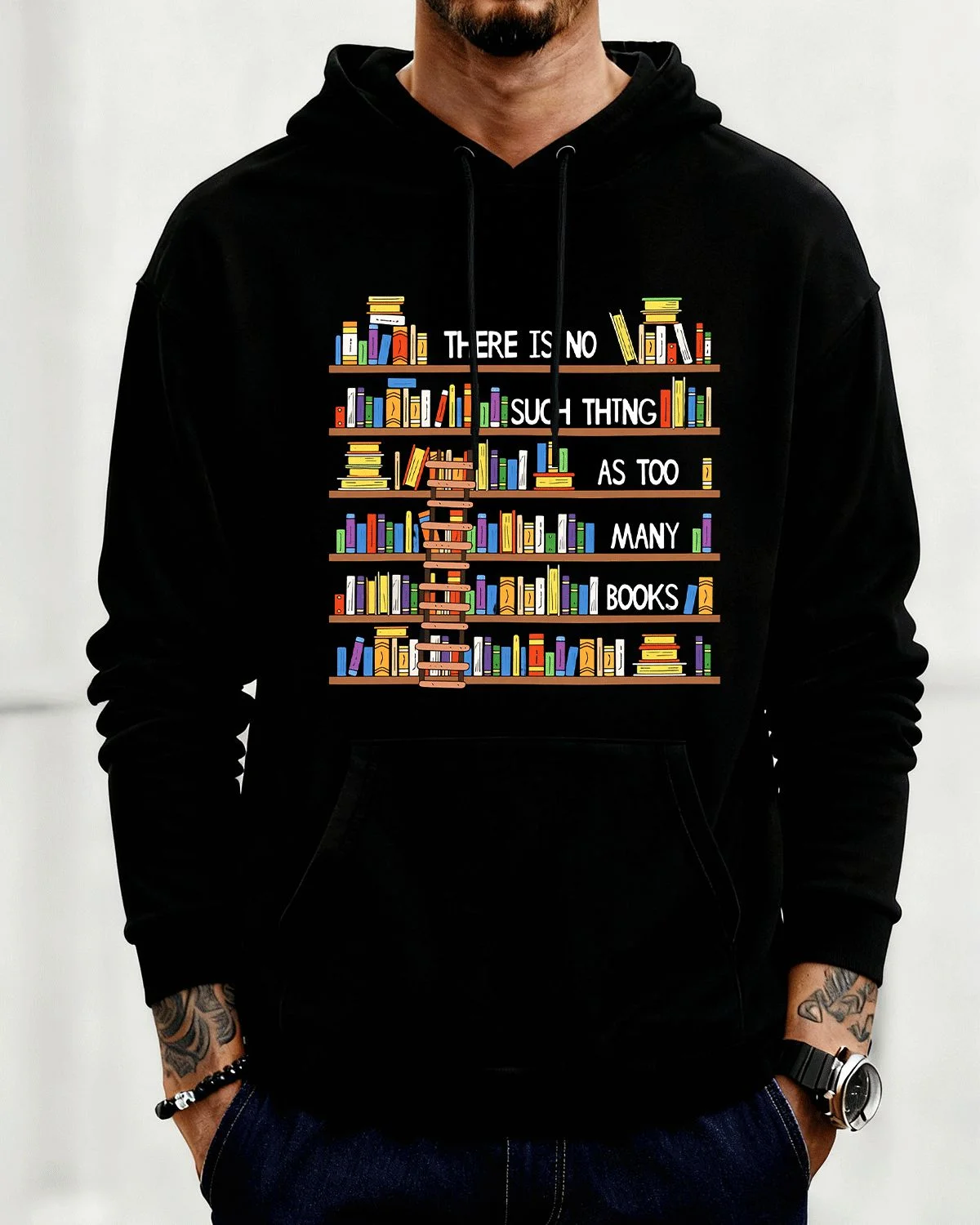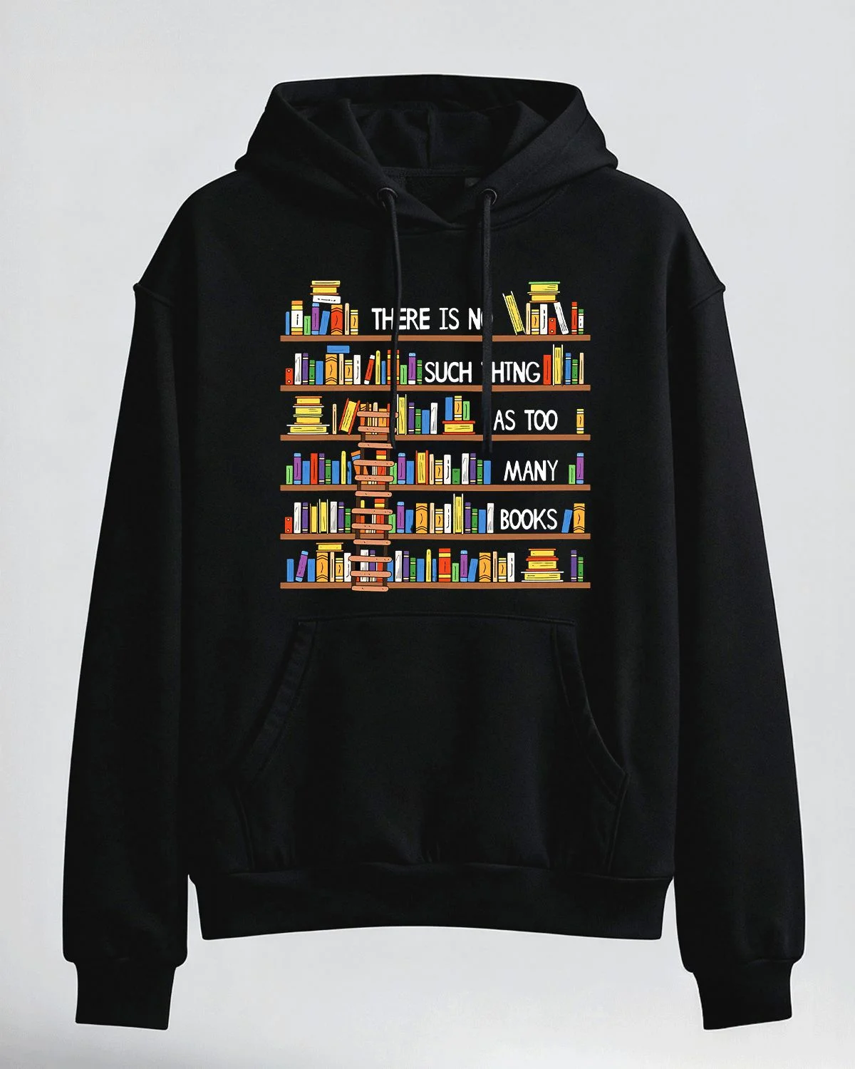 There Is No Such Thing As Too Many Books Summer Cozy Graphic Hoodie-Casual Vintage,Long Sleeve,Soft Fabric,Comfortable Fit