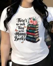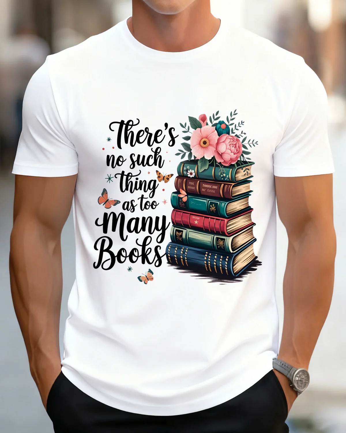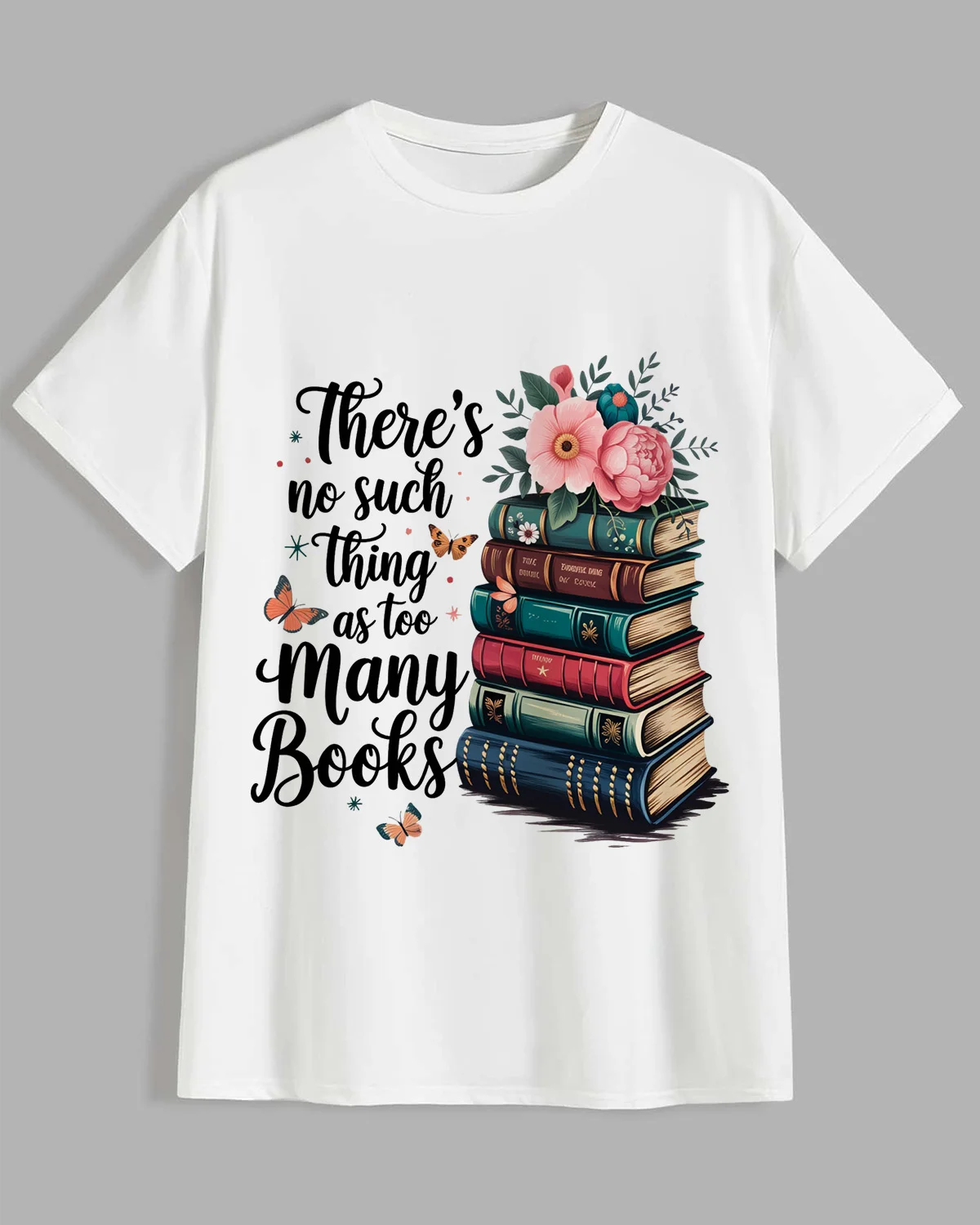 There's No Such Thing As Too Many Books Summer Cotton Graphic T Shirt-Casual Artistic,Short Sleeve,Soft Fabric,Comfortable Fit