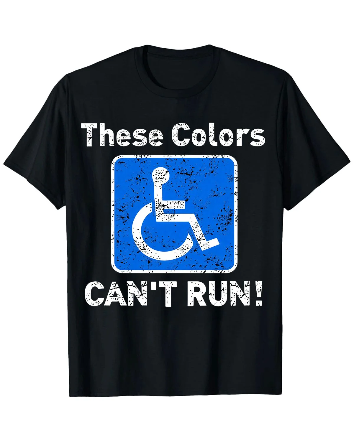 These Colors Can't Run Wheelchair Symbol Summer Cotton Graphic T Shirt-Casual Distressed,Short Sleeve,Soft Fabric,Comfortable Fit