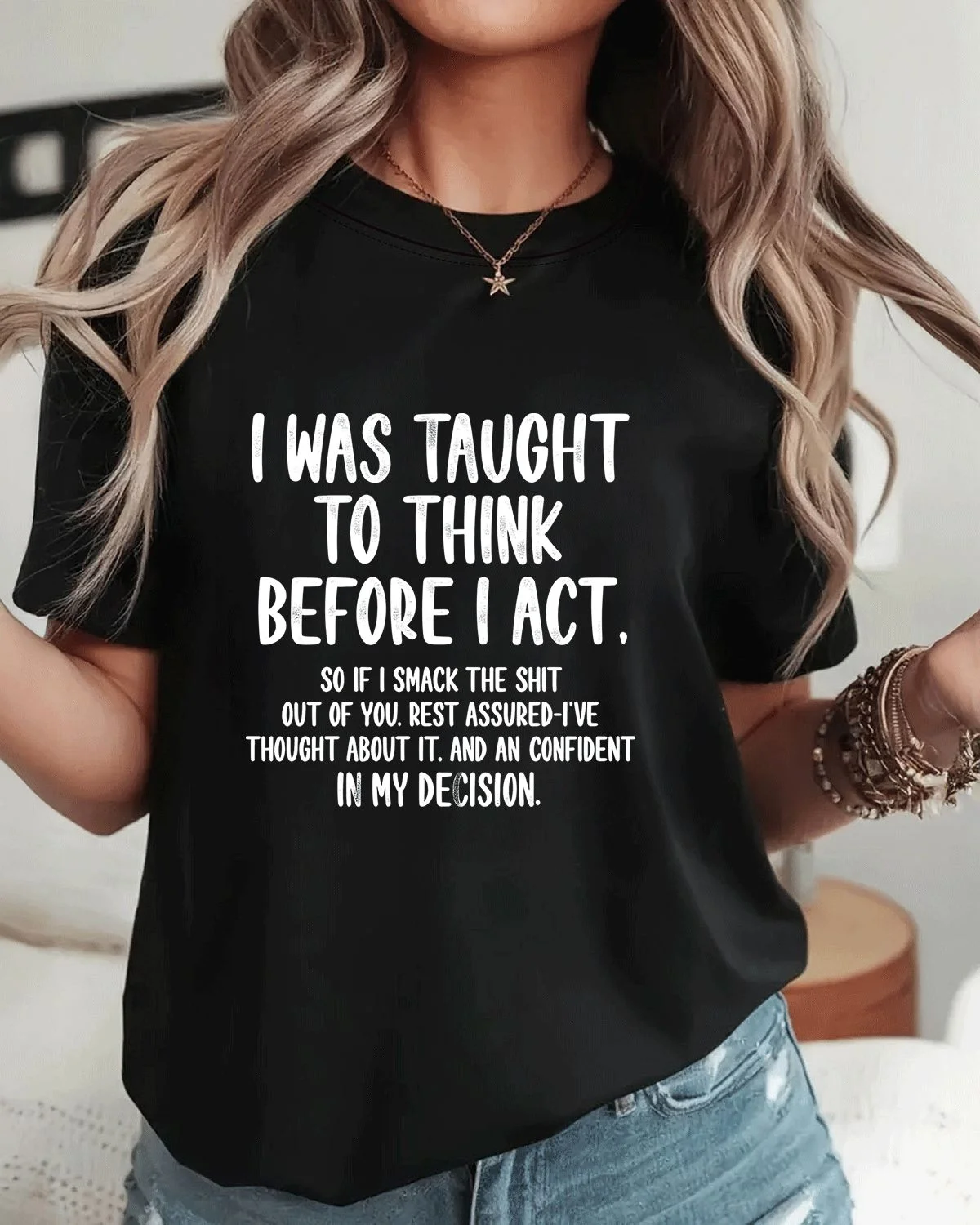 Think Before I Act Confident Decision Summer Cotton Graphic T Shirt - Casual Funny,Short Sleeve,Soft Fabric,Comfortable Fit