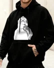 Angry Christmas Cat with Santa Hat and Lights Summer Cozy Graphic Hoodie - Funny Vintage, Long Sleeve, Soft Fabric, Comfortable Fit