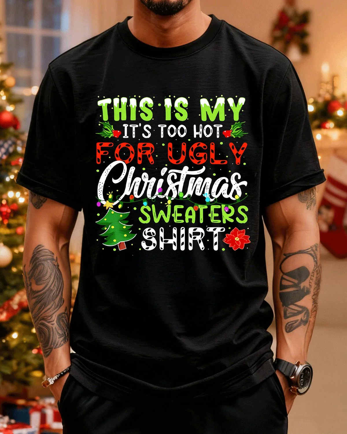 This Is My Too Hot For Ugly Christmas Sweaters Summer Cotton Graphic T Shirt - Funny Casual, Short Sleeve, Soft Fabric, Comfortable Fit