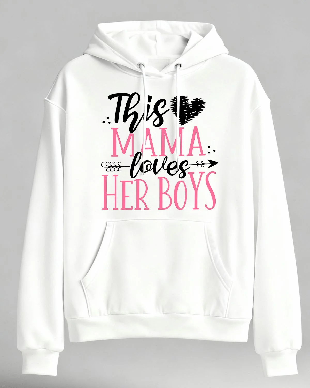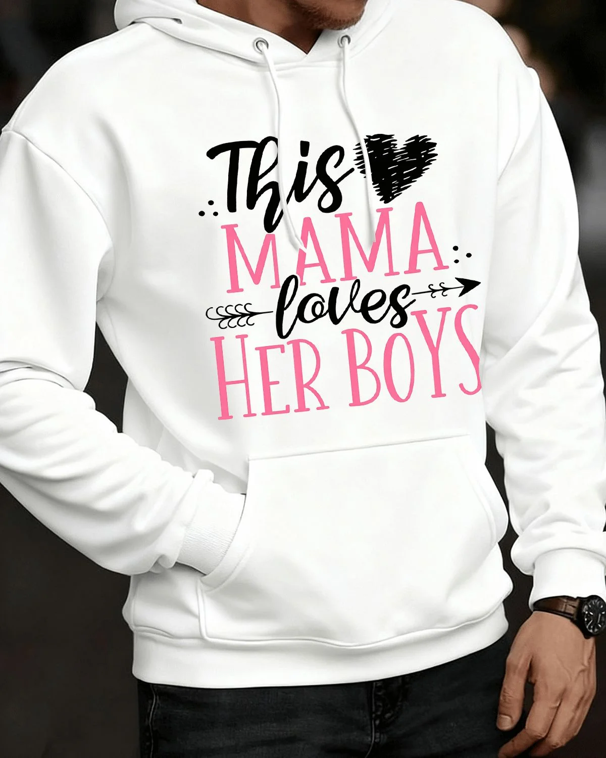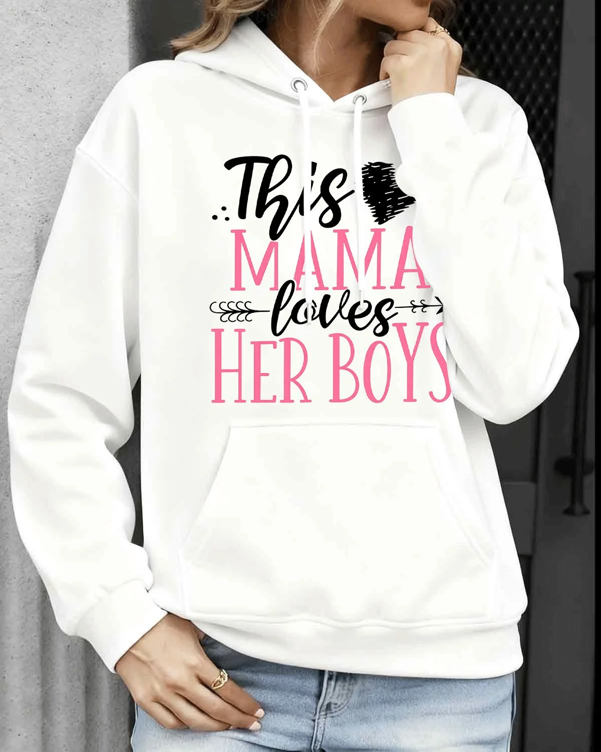 This Mama Loves Her Boys Mom Cozy Graphic Hoodie for Men and Women - Casual Classic, Long Sleeve, Soft Fabric, Comfortable Fit