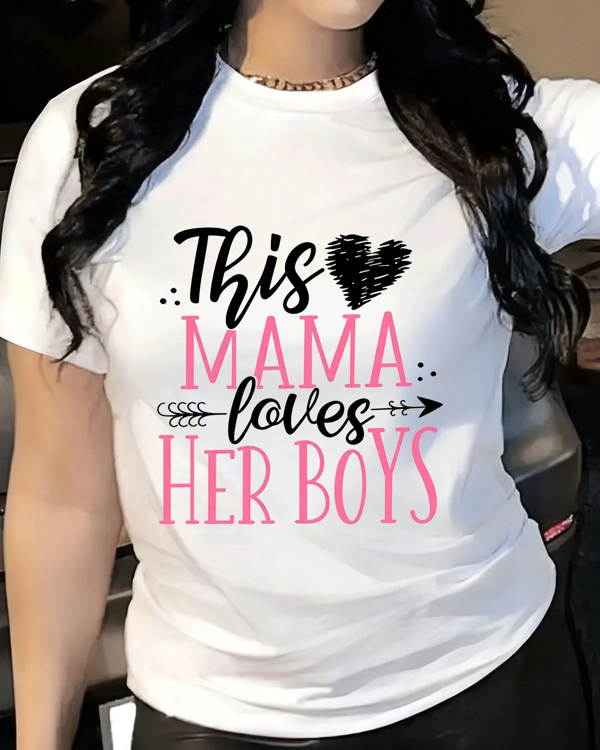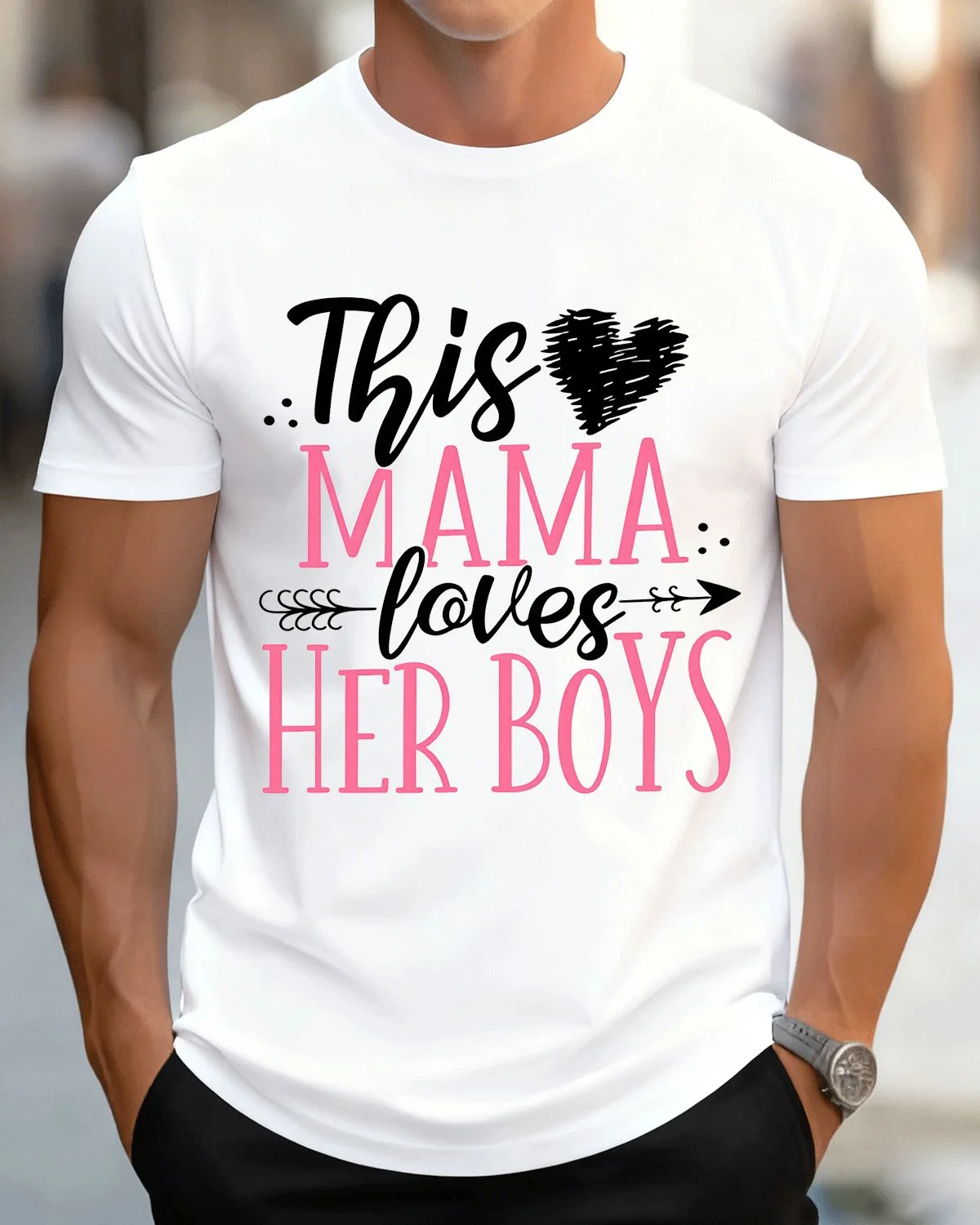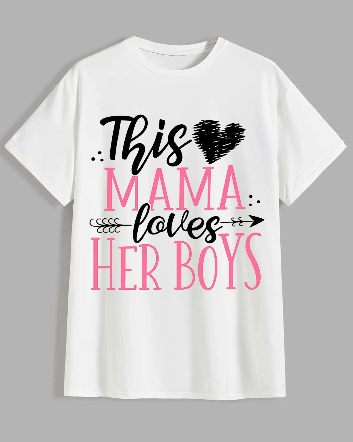 This Mama Loves Her Boys Mom Summer Cotton Graphic T Shirt - Casual Classic, Short Sleeve, Soft Fabric, Comfortable Fit