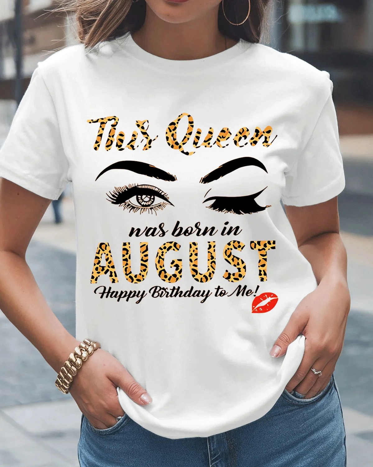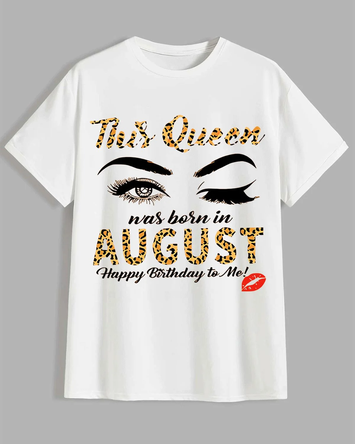 This Queen August Birthday Summer Cotton Graphic T Shirt - Casual Trendy, Short Sleeve, Soft Fabric, Comfortable Fit