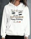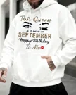 This Queen Born in September Happy Birthday Cozy Graphic Hoodie for Men and Women - Casual Trendy, Long Sleeve, Soft Fabric, Comfortable Fit
