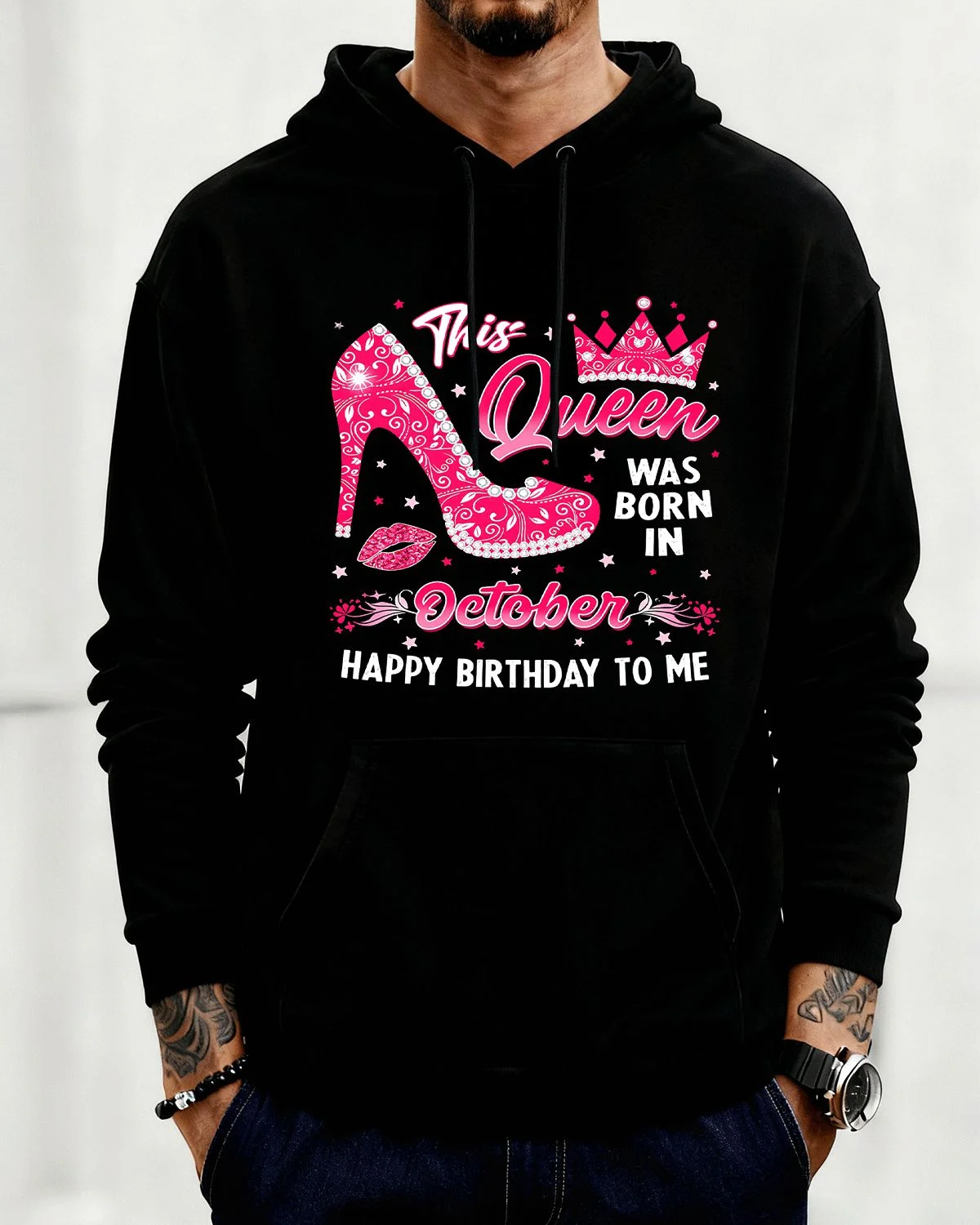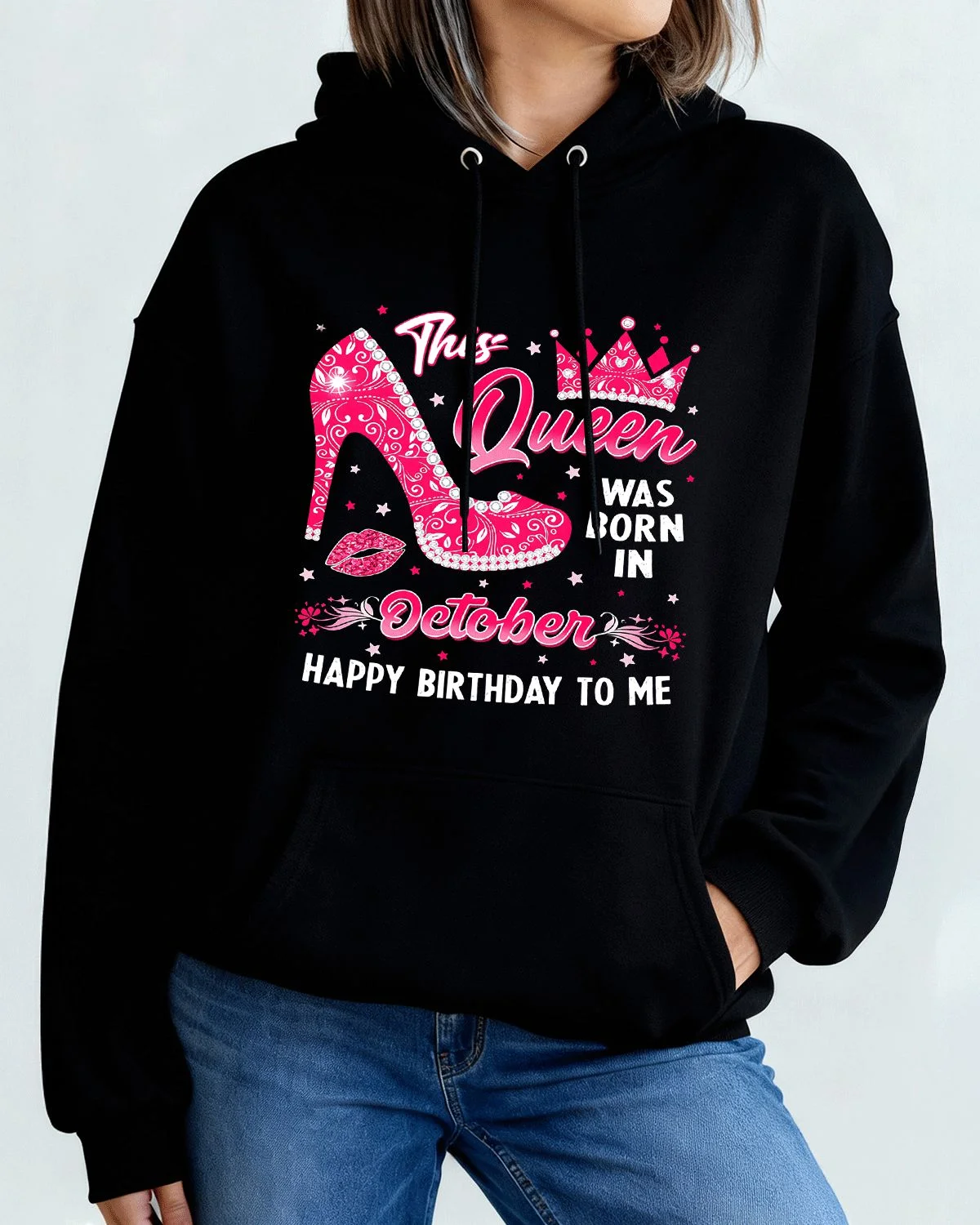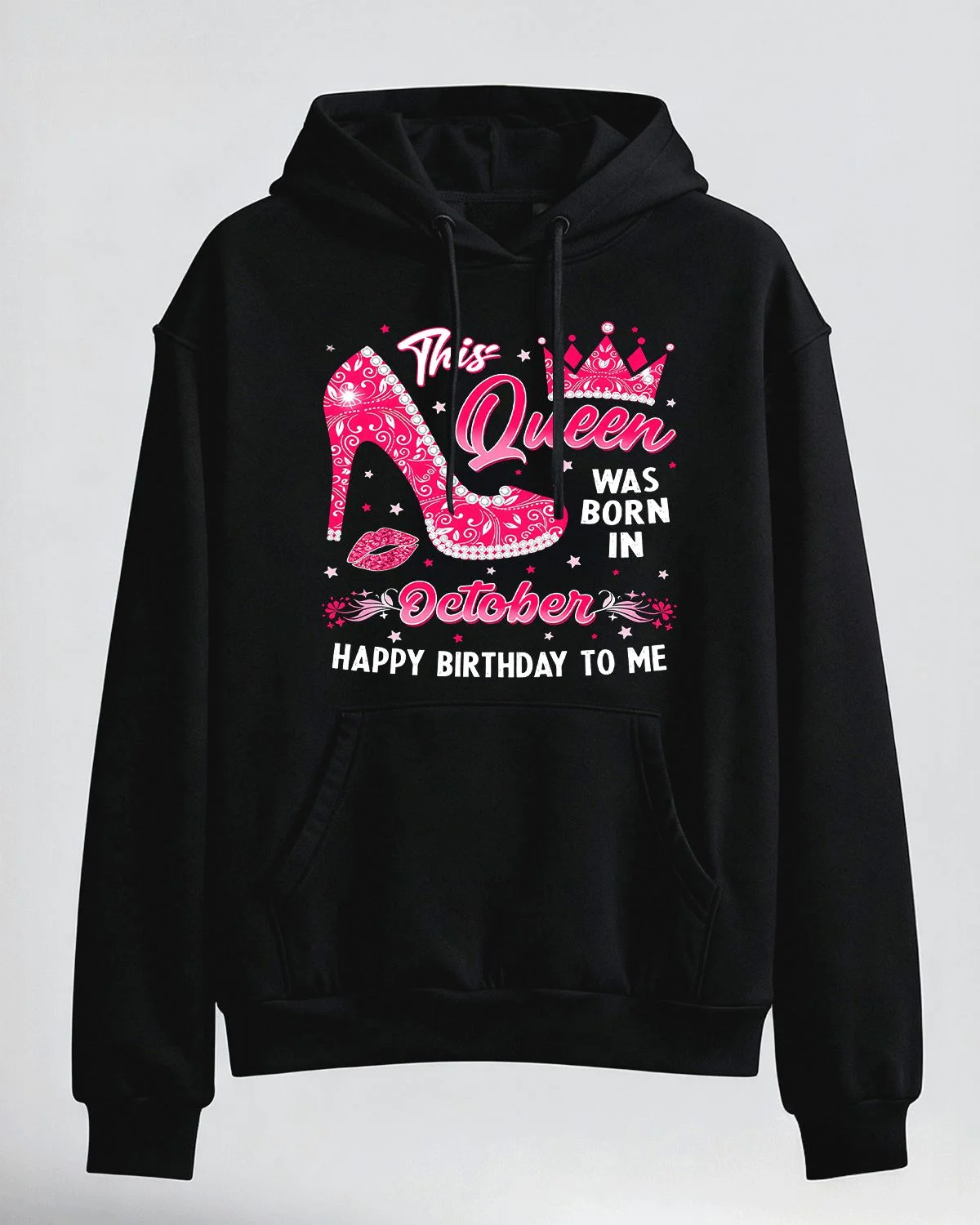 This Queen Mom Born in October Cozy Graphic Hoodie for Men and Women - Chic Vintage, Long Sleeve, Soft Fabric, Comfortable Fit