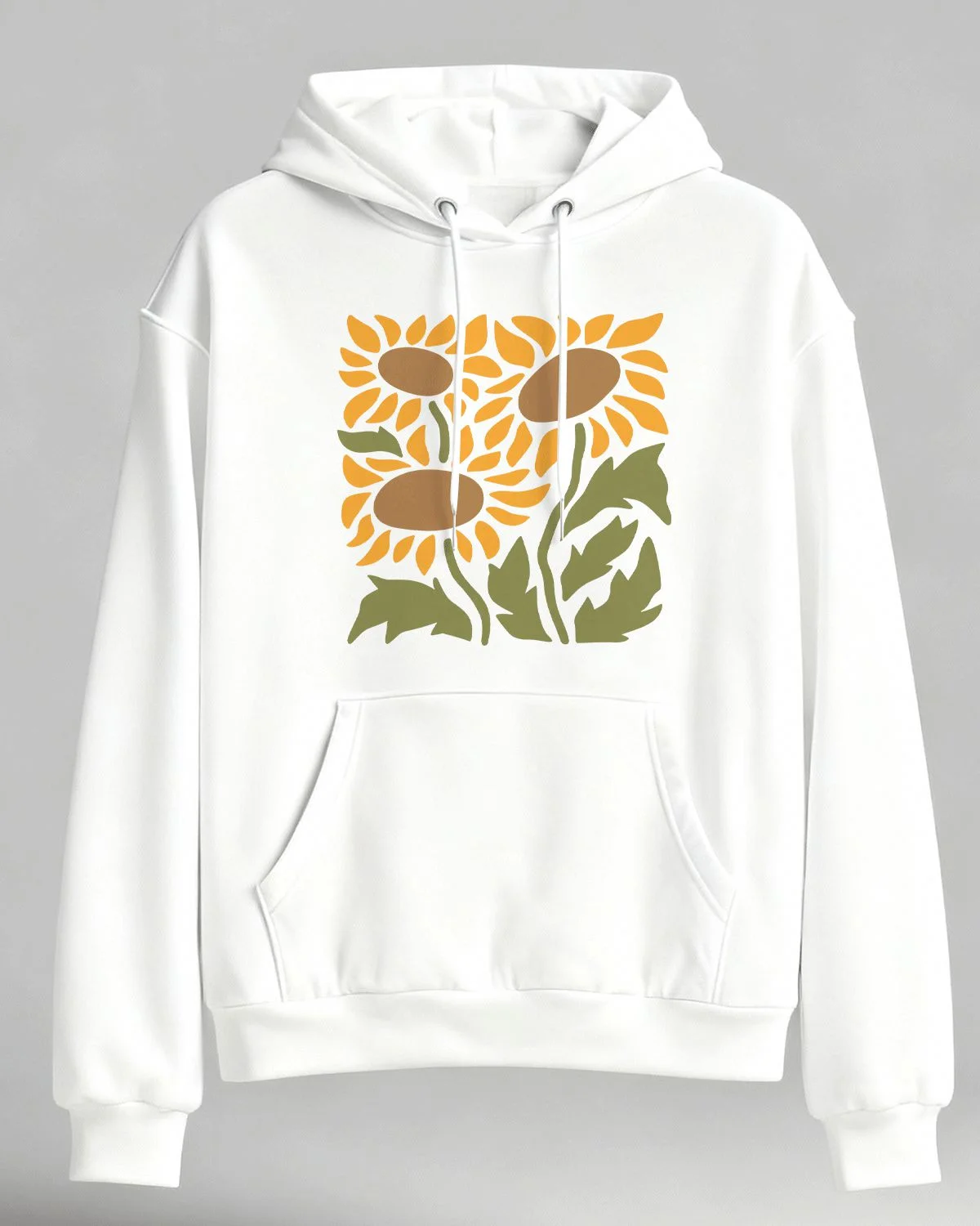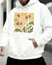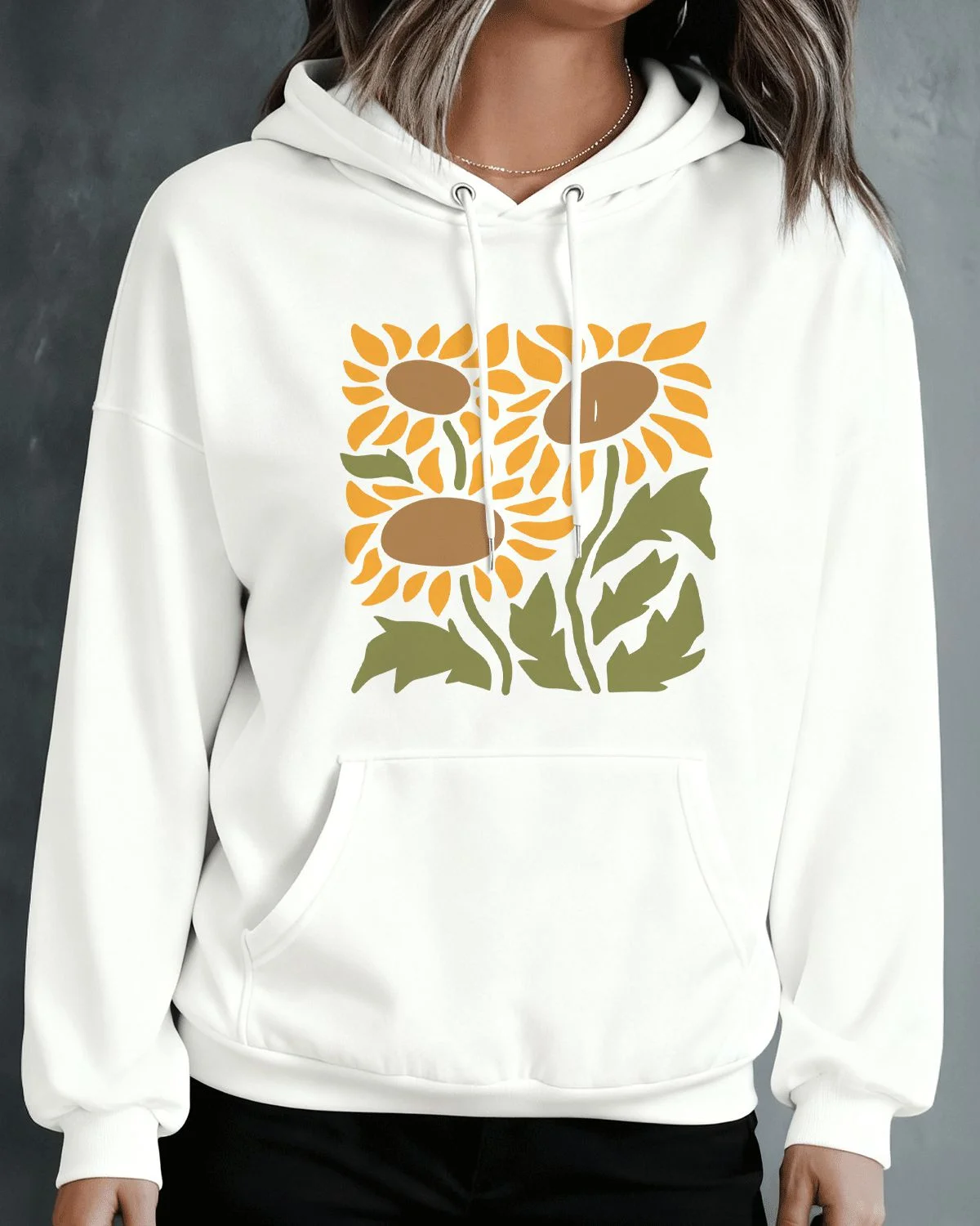 Three Sunflowers Cozy Cotton Graphic Hoodie with Pocket-Vintage Artistic,Long Sleeve,Soft Fabric,Comfortable Fit