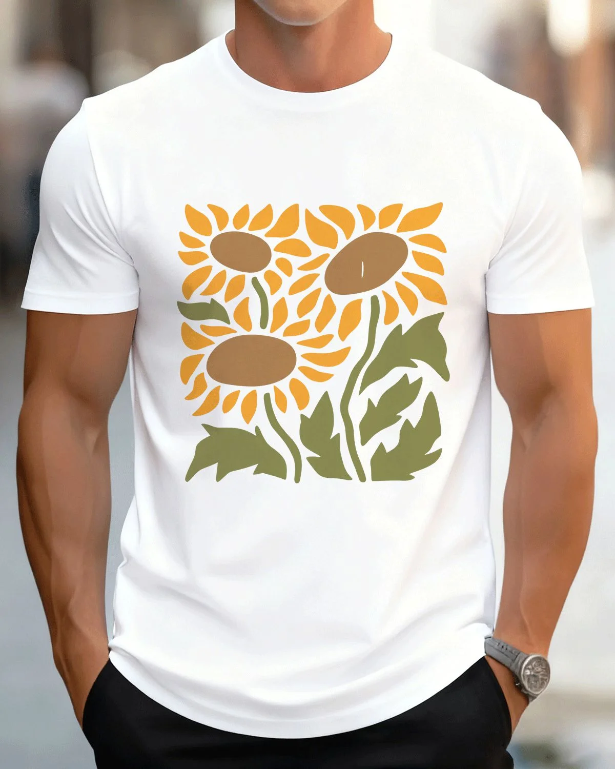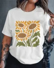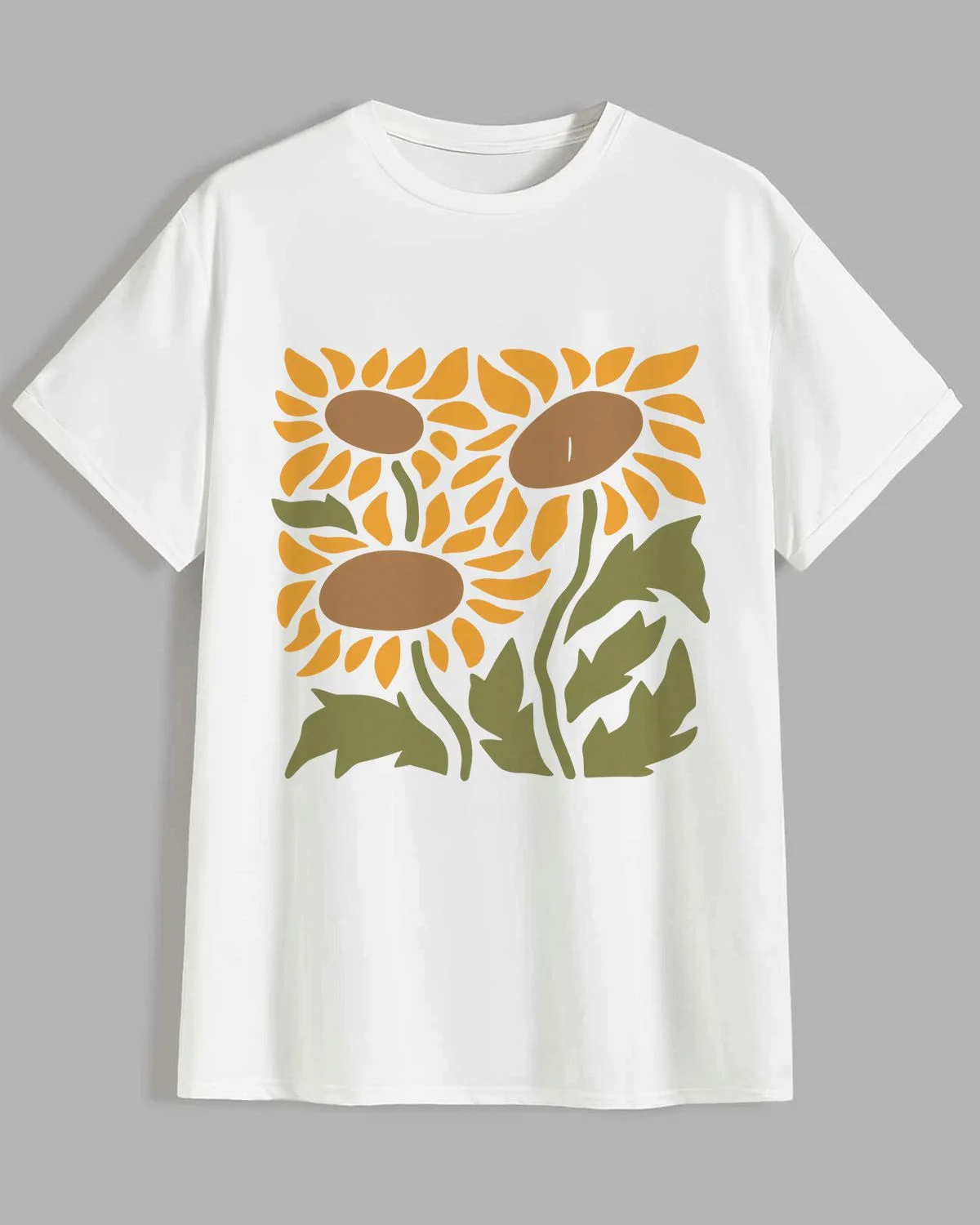 Three Sunflowers Summer Cotton Graphic T Shirt - Vintage Artistic,Short Sleeve,Soft Fabric,Comfortable Fit
