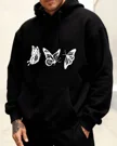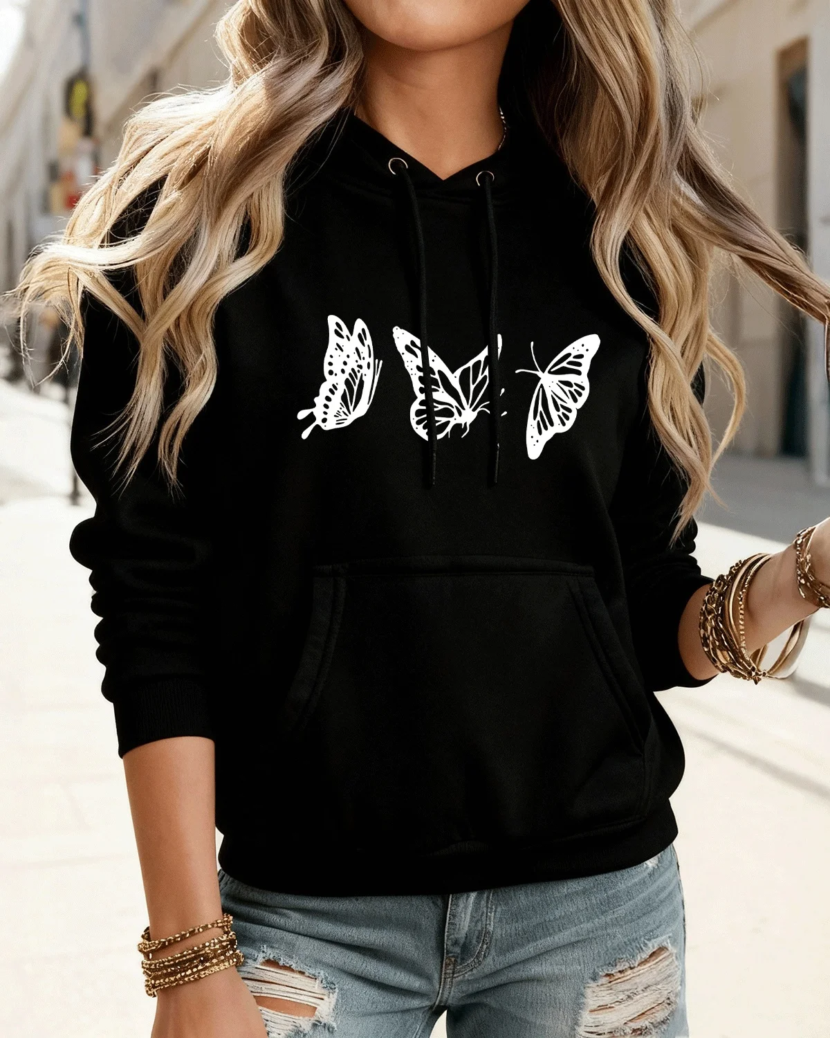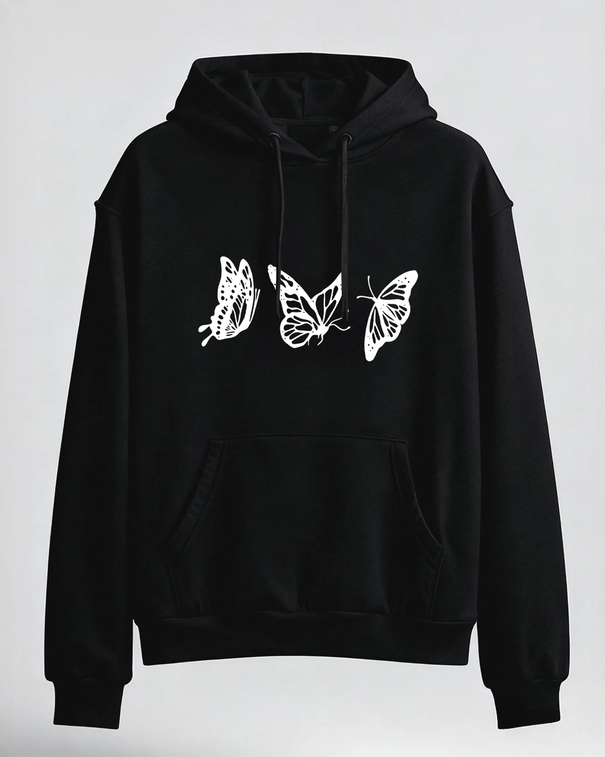 Three White Butterflies Cozy Cotton Graphic Hoodie-Vintage Artistic,Long Sleeves,Soft Fabric,Comfortable Fit