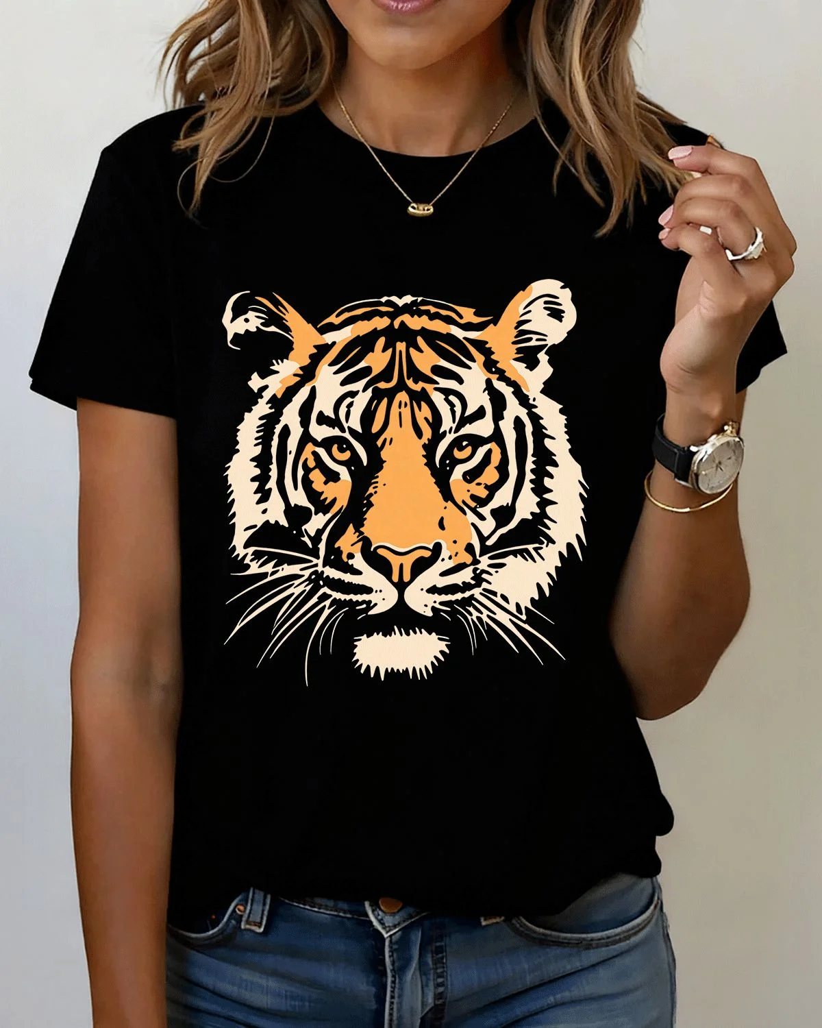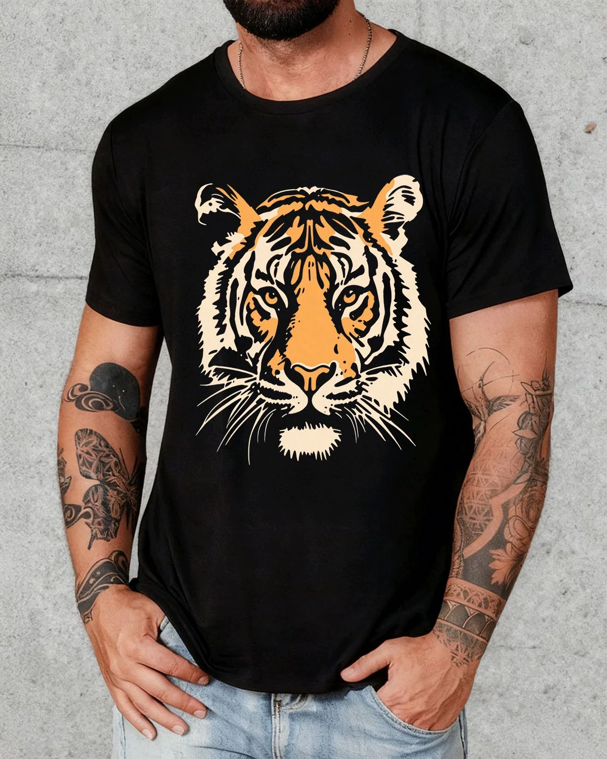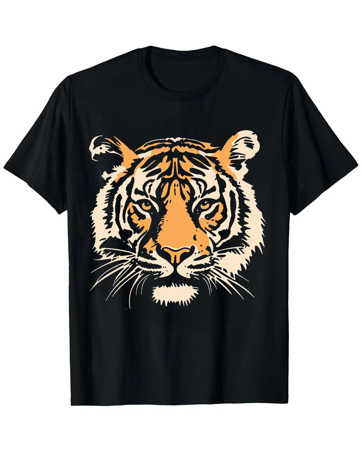 Tiger Face Artwork Summer Cotton Graphic T Shirt - Vintage Artistic,Short Sleeve,Soft Fabric,Comfortable Fit