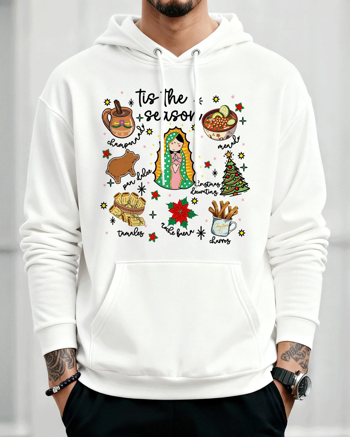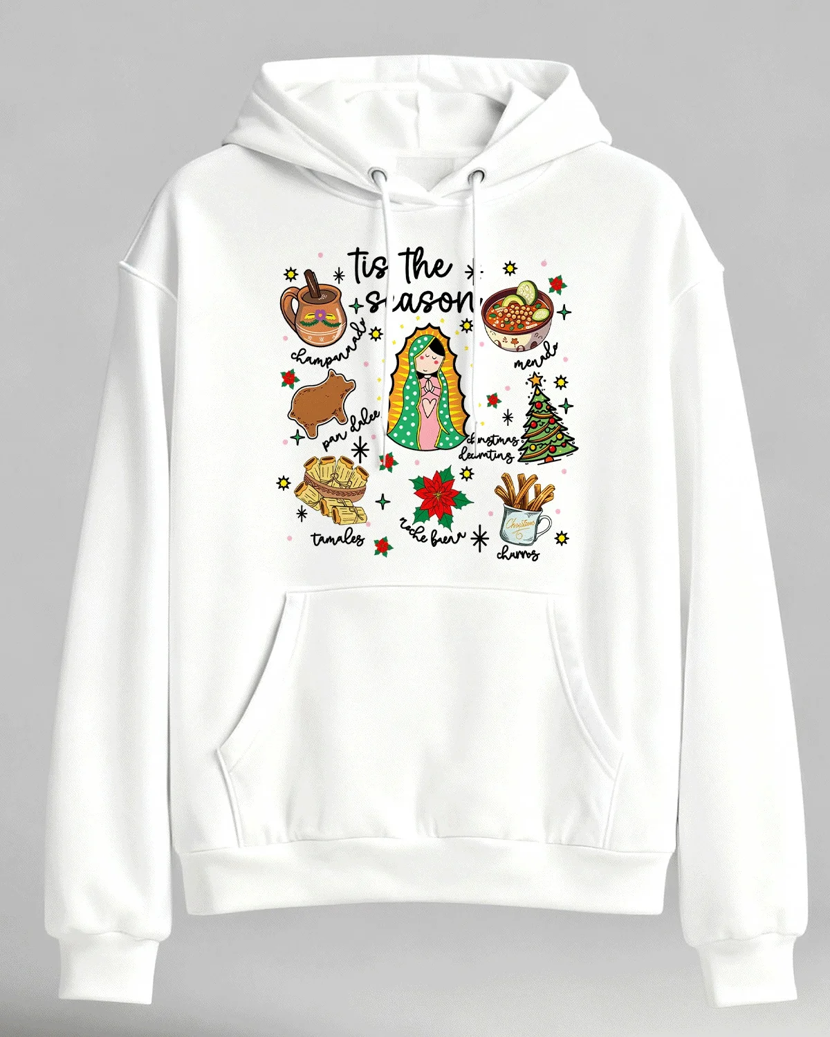 Tis The Season Mexican Christmas Foods Cozy Cotton Graphic Hoodie-Casual Vintage,Long Sleeves,Soft Fabric,Comfortable Fit