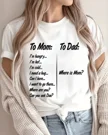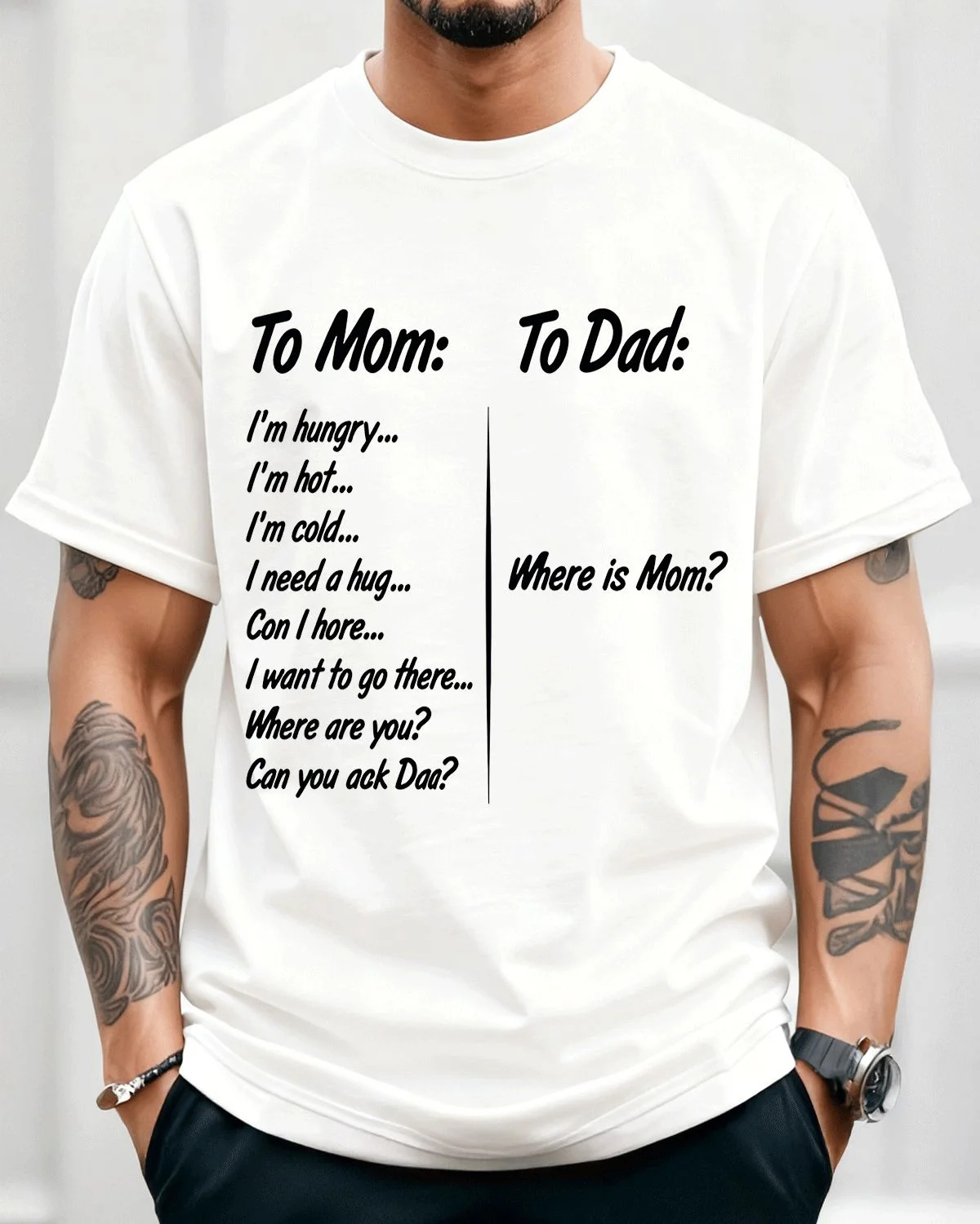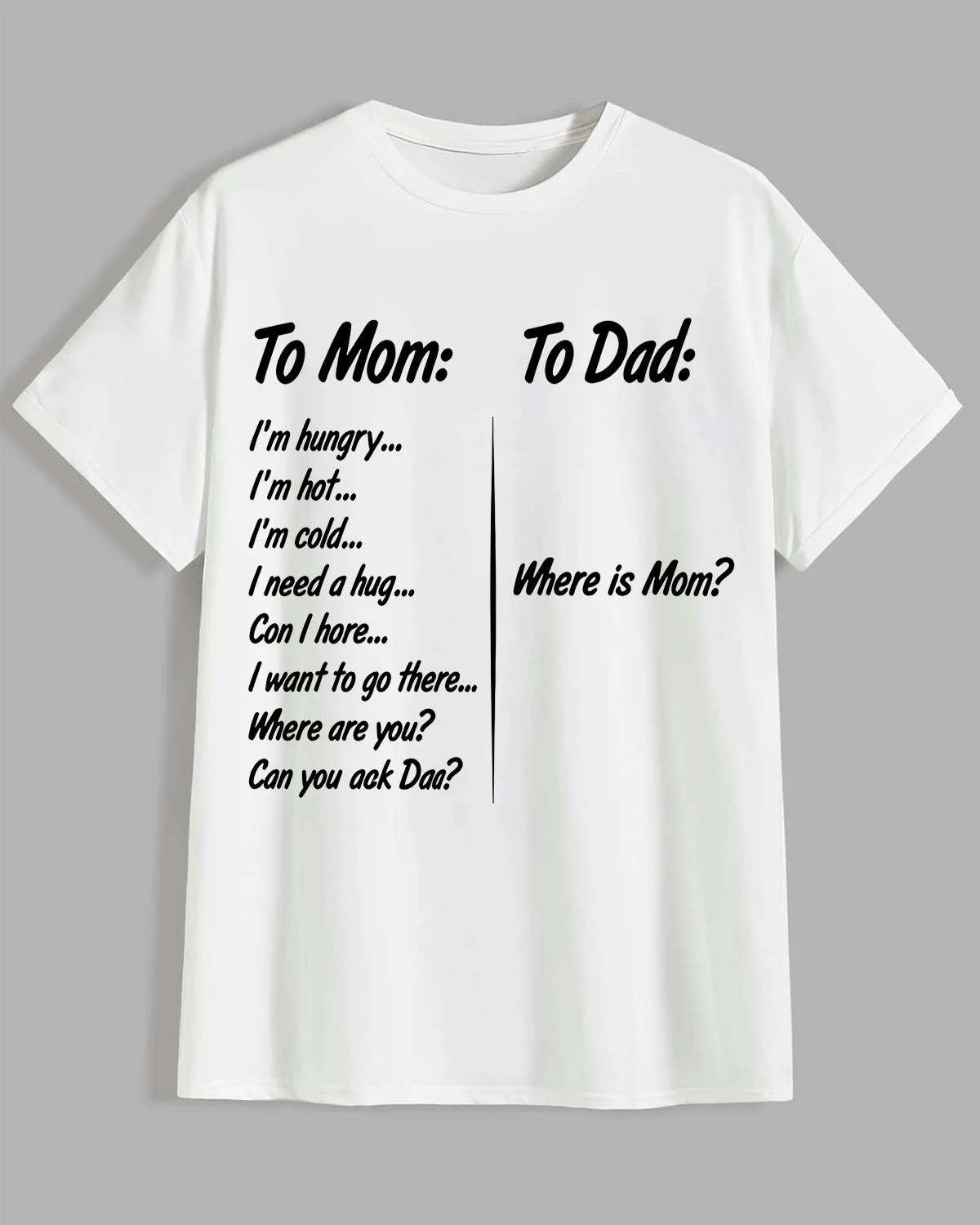 To Mom and Dad Where is Mom Summer Cotton Graphic T Shirt - Funny Casual, Short Sleeve, Soft Fabric, Comfortable Fit