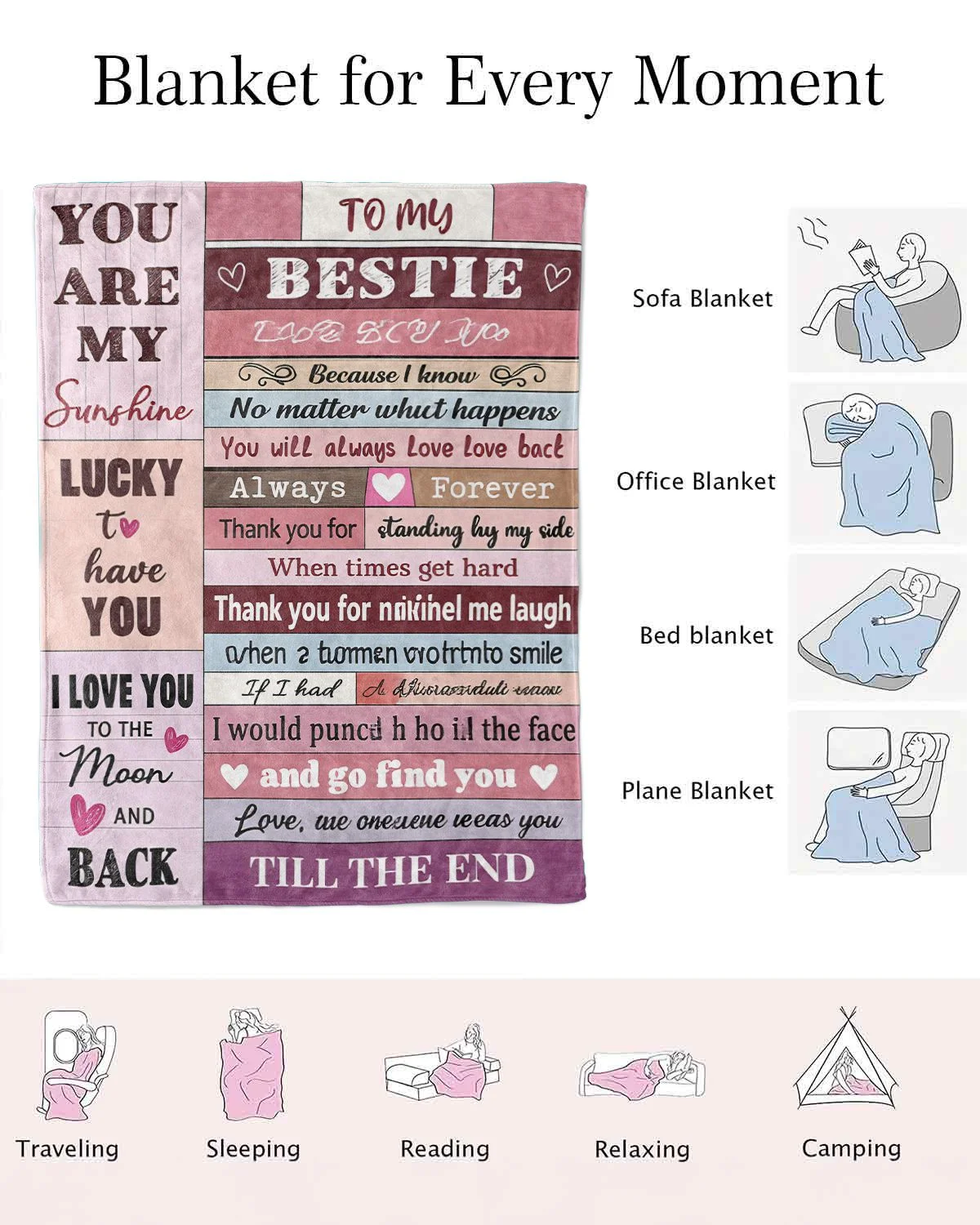 To My Bestie Love and Appreciation Letter Cozy Flannel Blanket-Cozy,Cute,Super Soft,Warm,Lightweight,For Couch,Gift