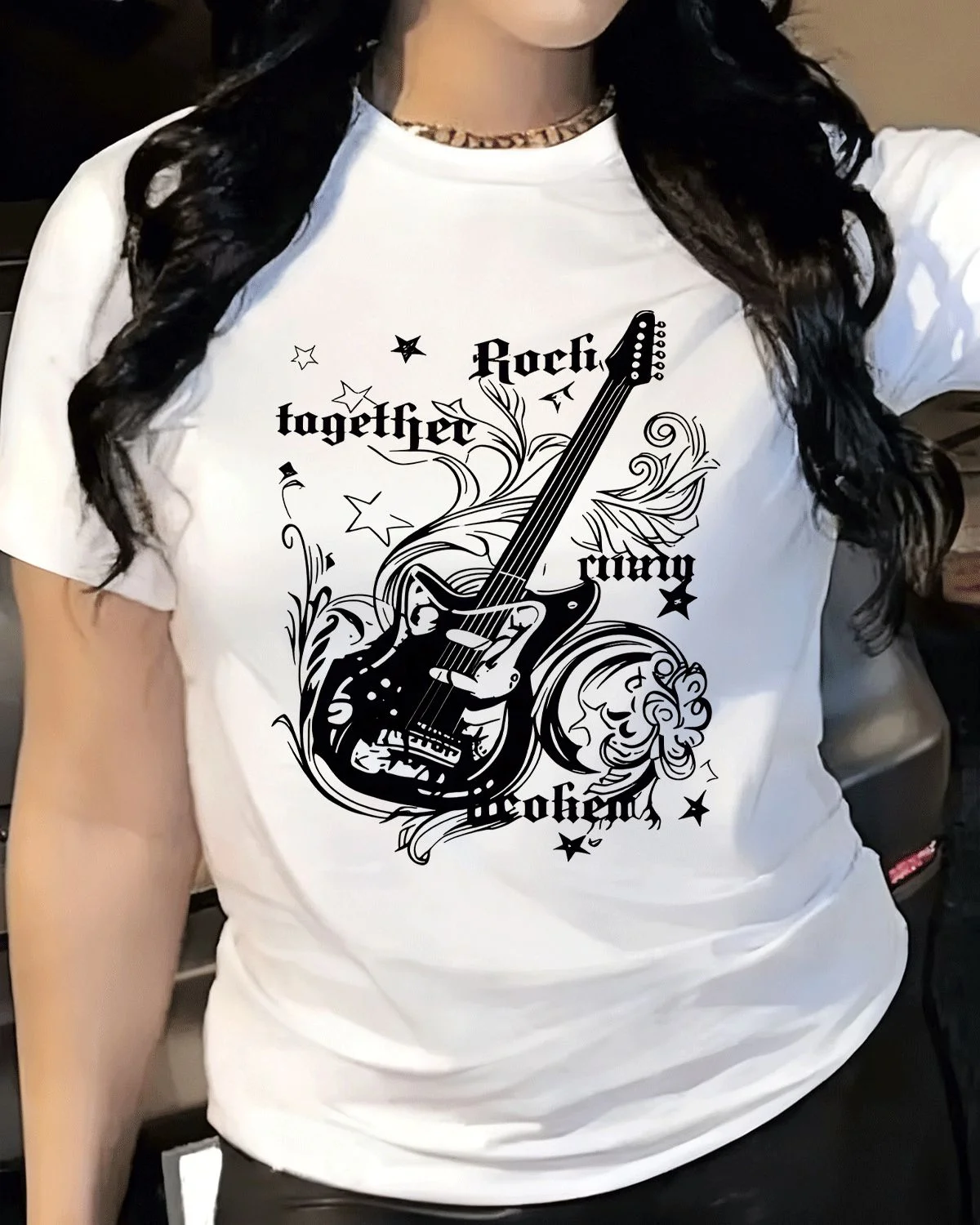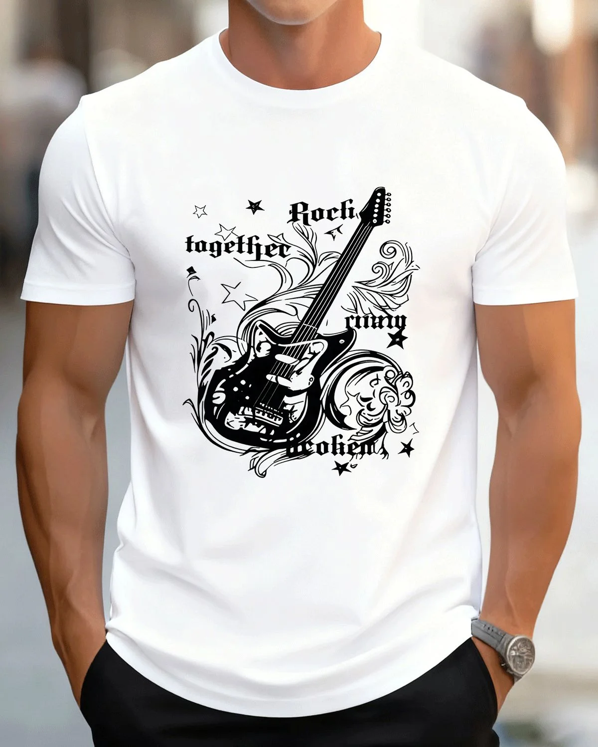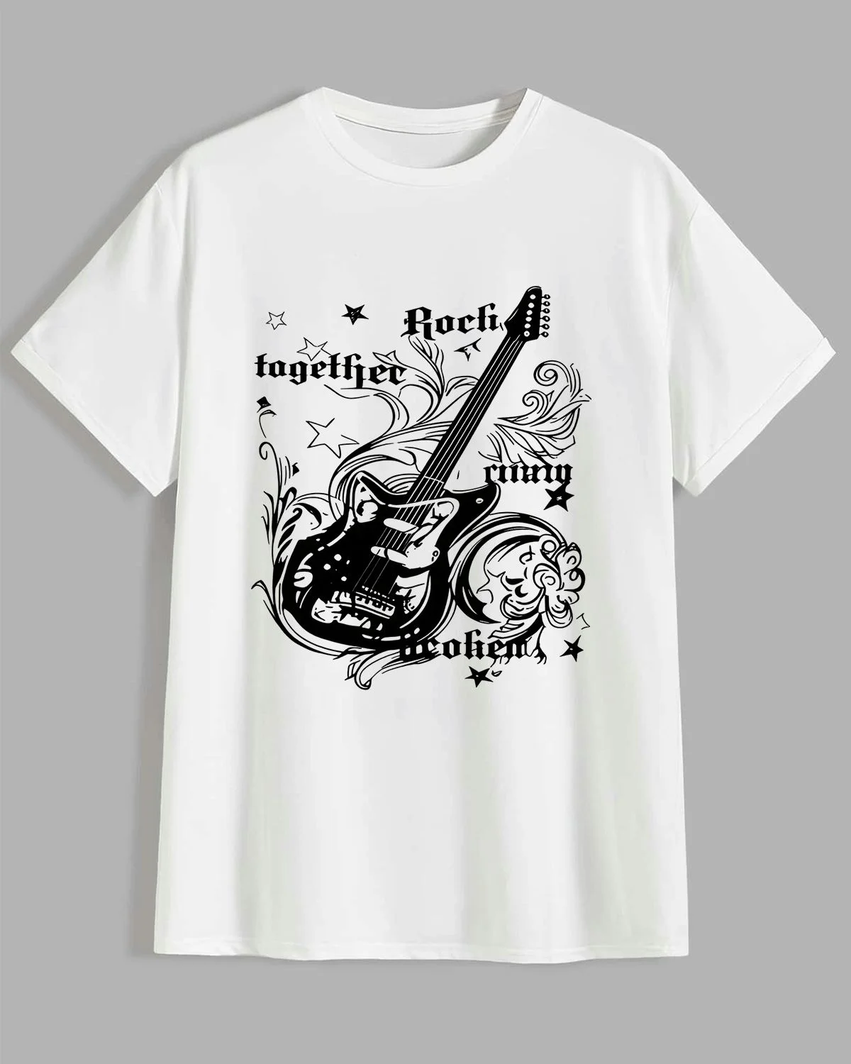 Together Rock Electric Guitar Summer Cotton Graphic T Shirt - Vintage Artistic,Short Sleeve,Soft Fabric,Comfortable Fit