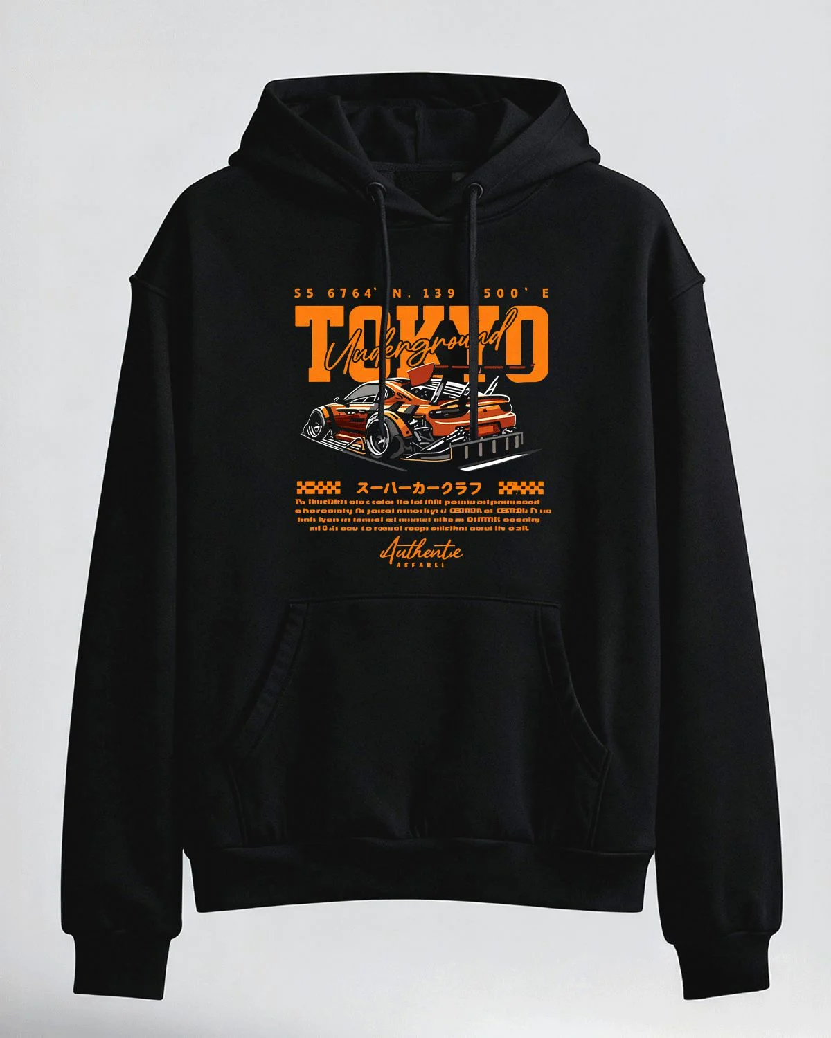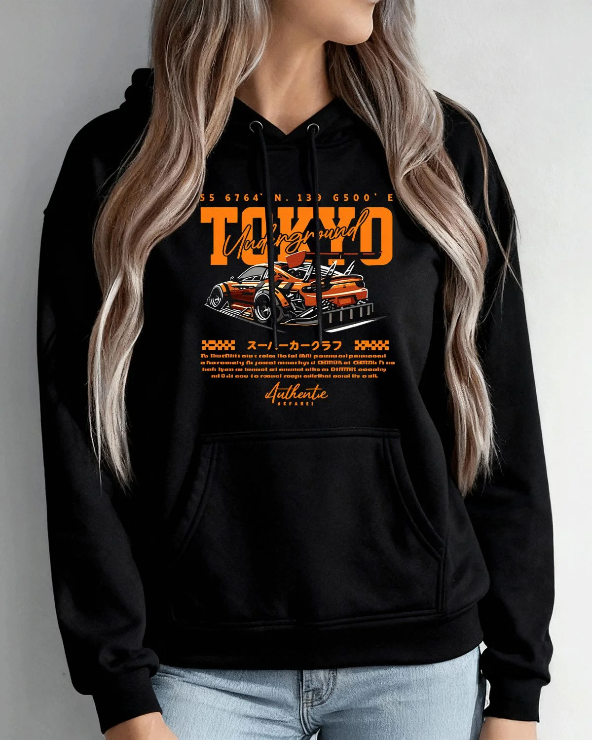 Tokyo Underground Supercar Club Cozy Cotton Graphic Hoodie with Pocket-Street Retro,Long Sleeve,Soft Fabric,Comfortable Fit