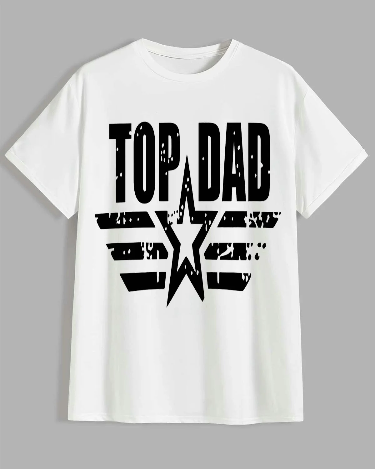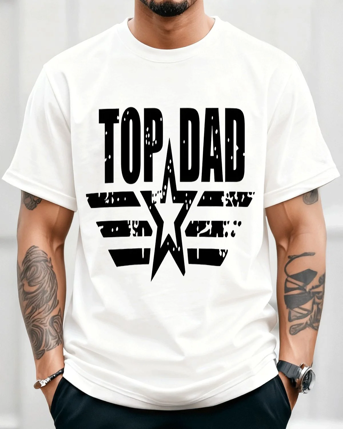 Top Dad Star Emblem Summer Cotton Graphic T Shirt - Vintage Cool, Short Sleeve, Soft Fabric, Comfortable Fit