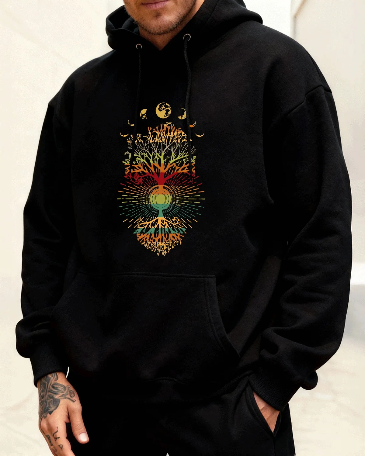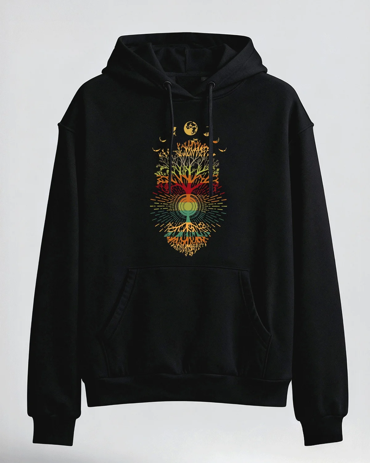 Tree of Life Sun and Moon Cozy Cotton Graphic Hoodie-Vintage Artistic,Long Sleeves,Soft Fabric,Comfortable Fit