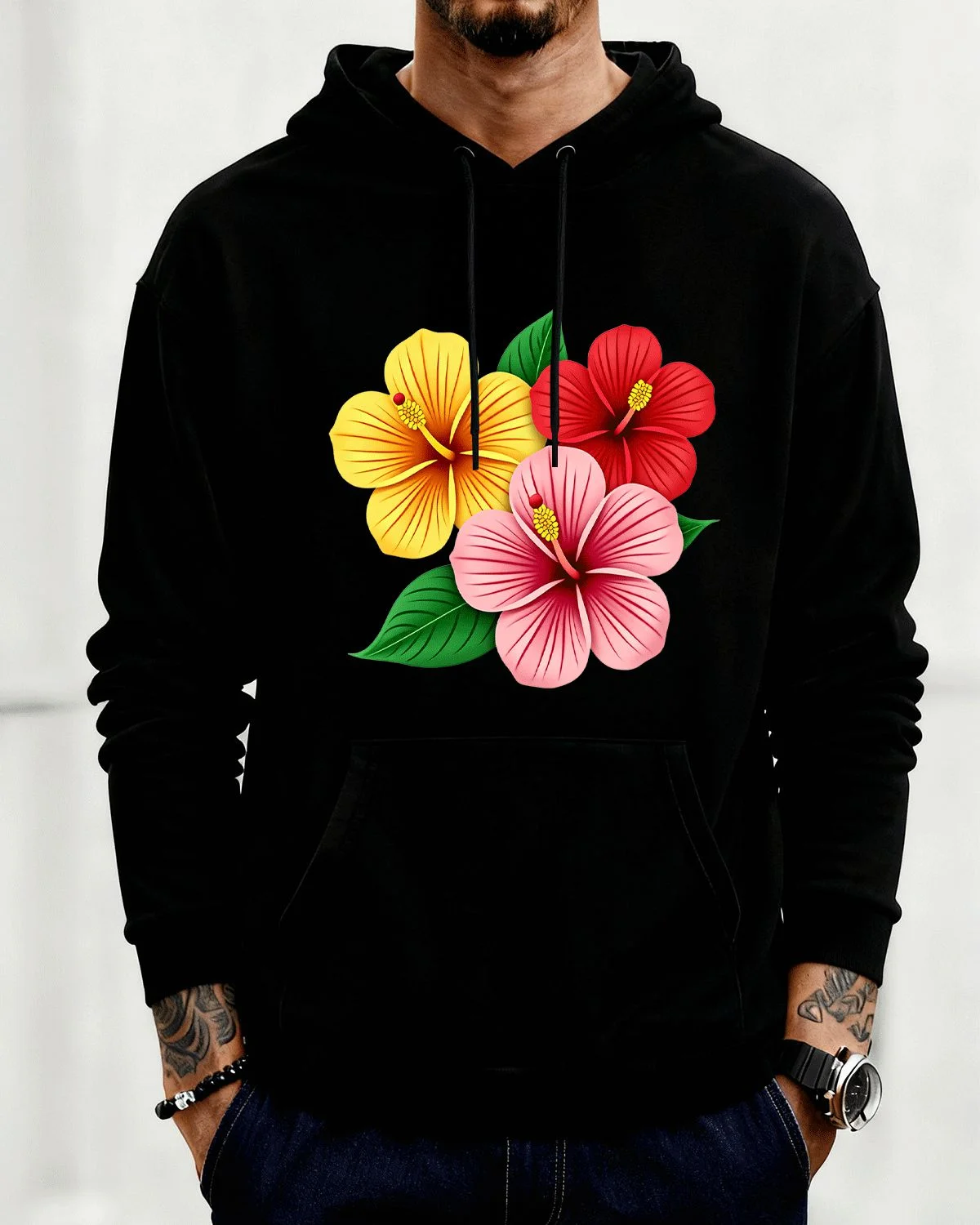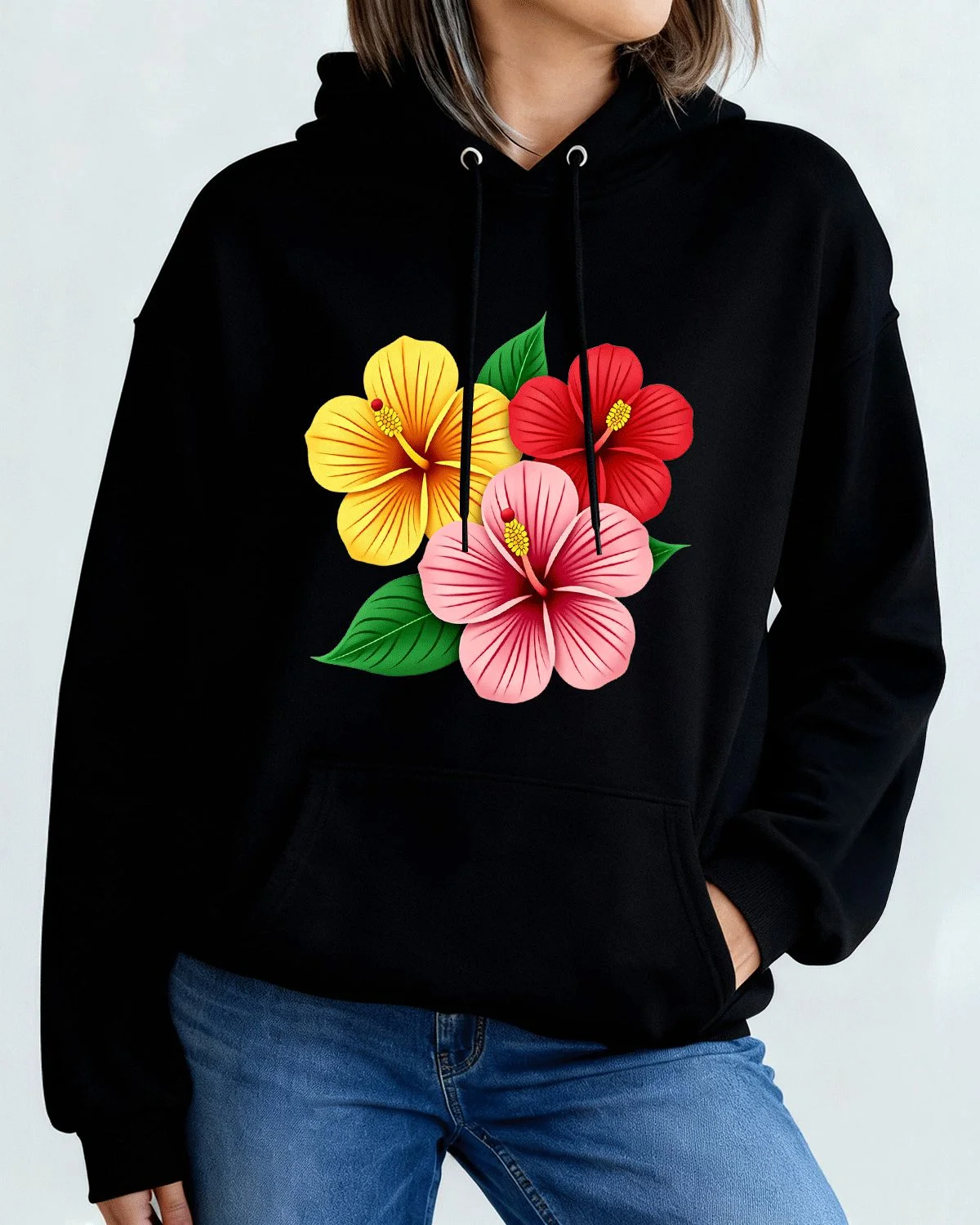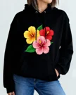 Tropical Hibiscus Flowers Summer Cozy Graphic Hoodie-Casual Vintage,Long Sleeve,Soft Fabric,Comfortable Fit