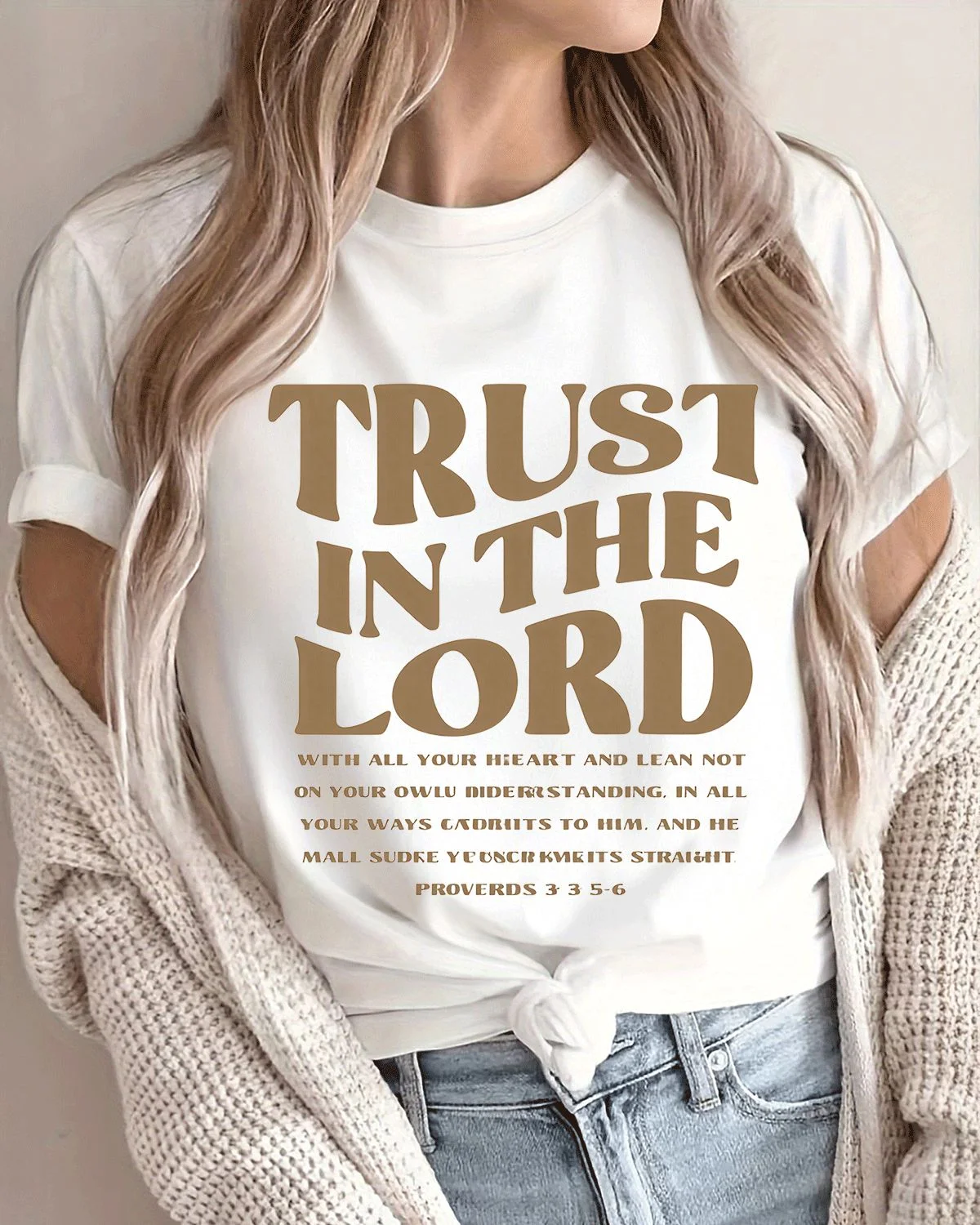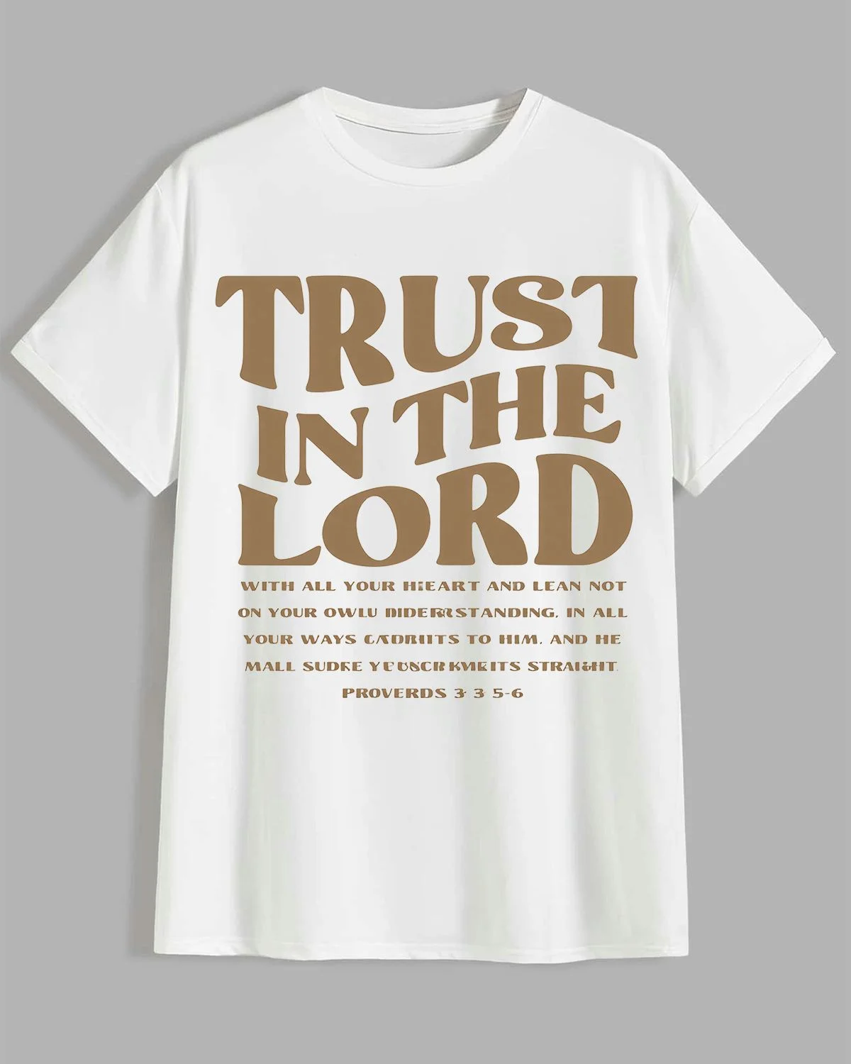 Trust In The Lord Proverbs 3 5-6 Summer Cotton Graphic T Shirt - Casual Vintage, Short Sleeve, Soft Fabric, Comfortable Fit