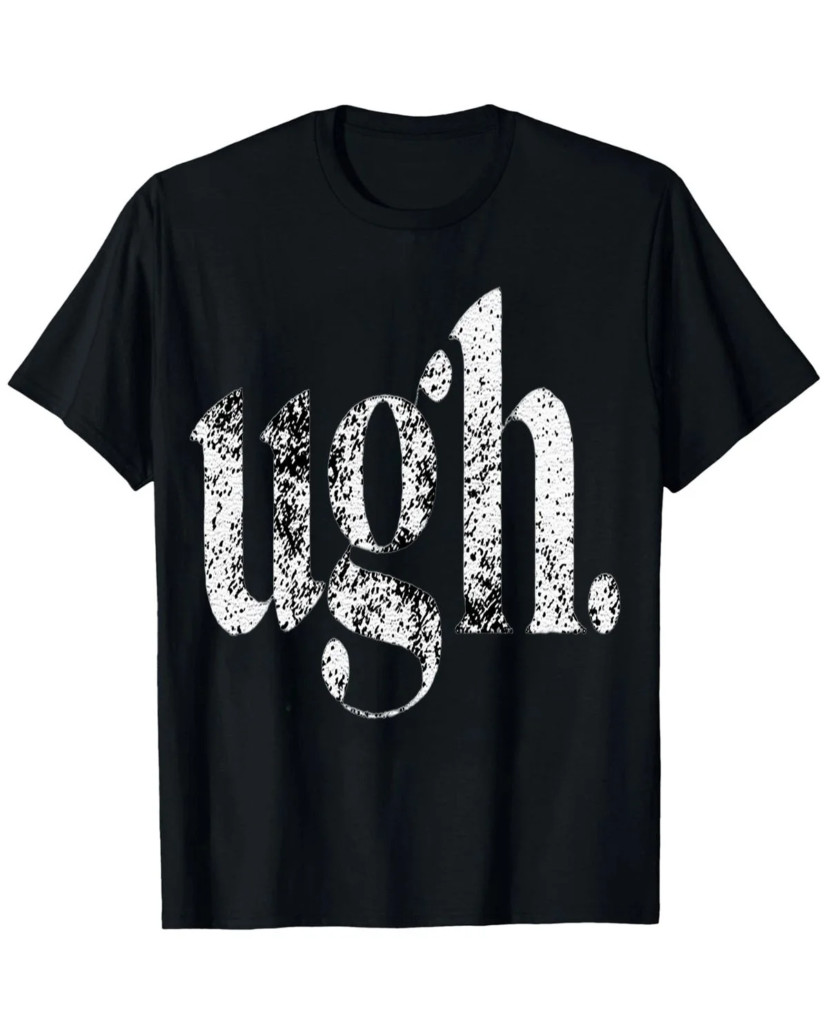Ugh Distressed Text Summer Cotton Graphic T Shirt-Casual Vintage,Short Sleeve,Soft Fabric,Comfortable Fit
