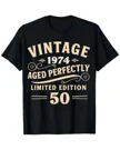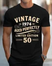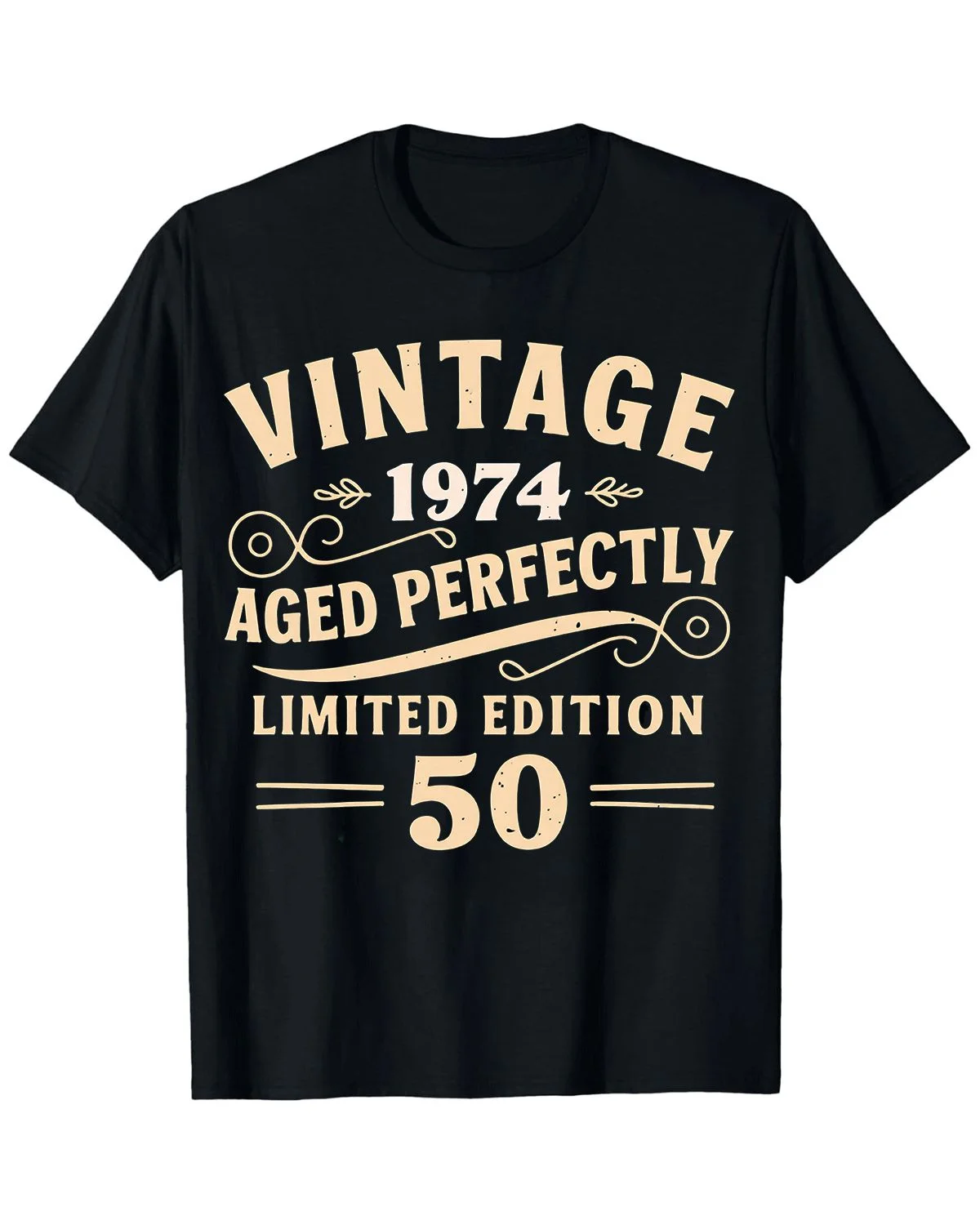 Vintage 1974 Birthday Aged Perfectly Limited Edition 50 Summer Cotton Graphic T Shirt - Vintage Classic, Short Sleeve, Soft Fabric, Comfortable Fit