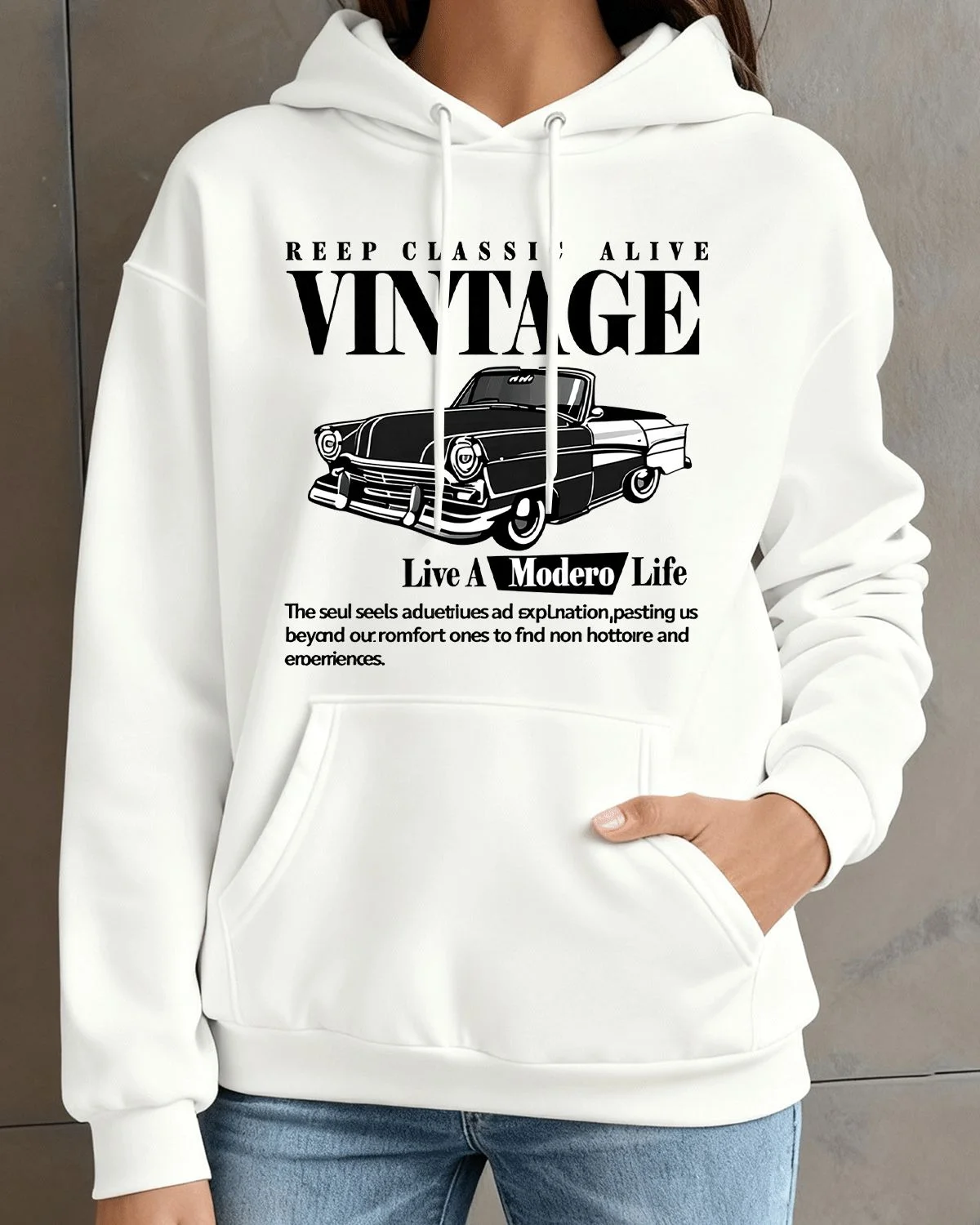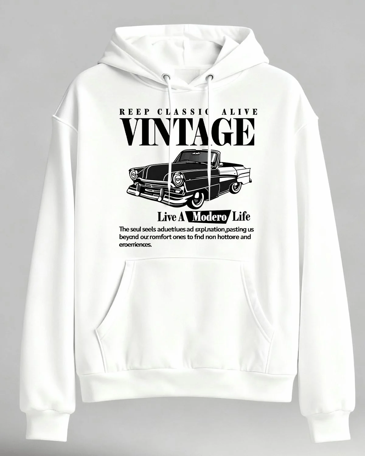 Vintage Classic Car Live a Modern Life Cozy Graphic Hoodie for Men and Women - Vintage Retro, Long Sleeve, Soft Fabric, Comfortable Fit