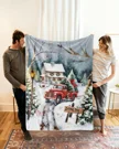 Vintage Red Truck Christmas Holiday Blessings Blanket-Cozy Classic,Warm,Plush,Durable,For Couch,Home Decor