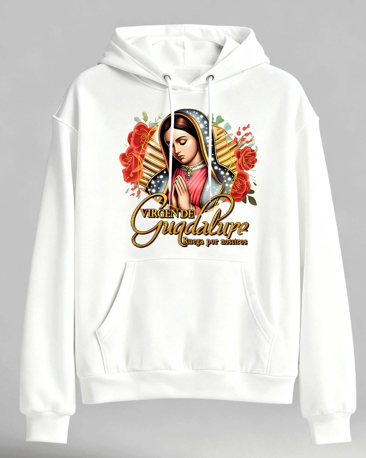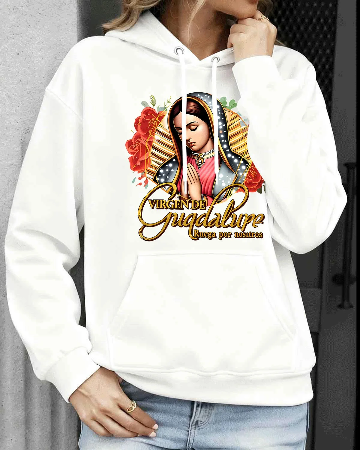 Virgen de Guadalupe Ruega Por Nosotros Summer Cozy Graphic Hoodie - Vintage Artistic, Long Sleeve, Soft Fabric, Comfortable Fit