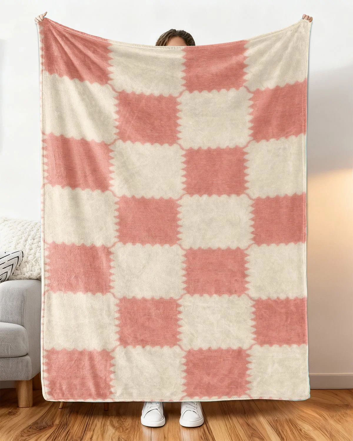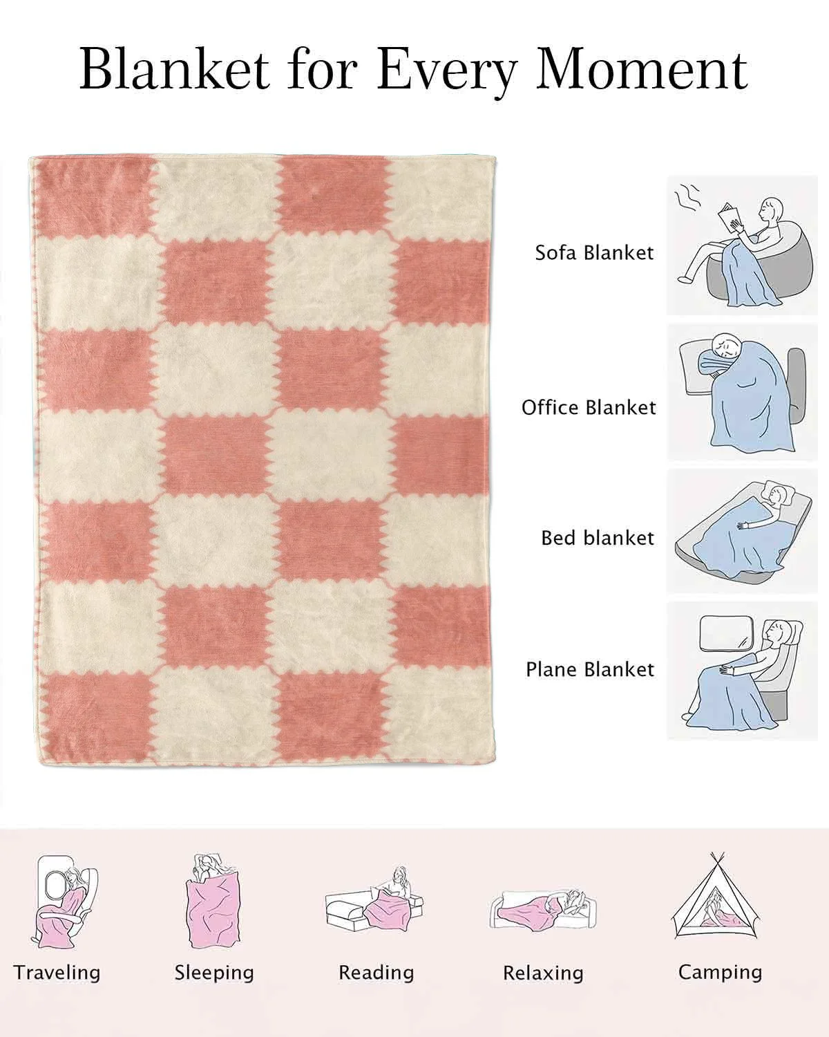 Warm Love Gift for Mom Pink Plaid Cozy Flannel Blanket-Cozy Classic,Super Soft,Warm,Lightweight,For Couch,Bedroom Use
