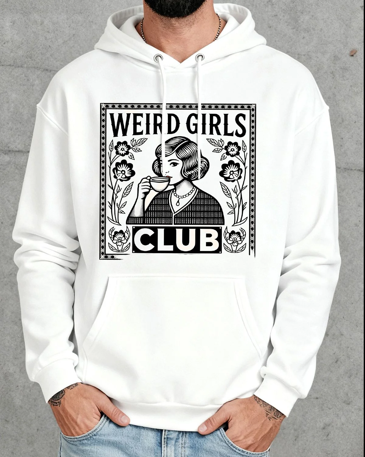 Weird Girls Club Cozy Graphic Hoodie for Men and Women - Retro Artistic, Long Sleeve, Soft Fabric, Comfortable Fit
