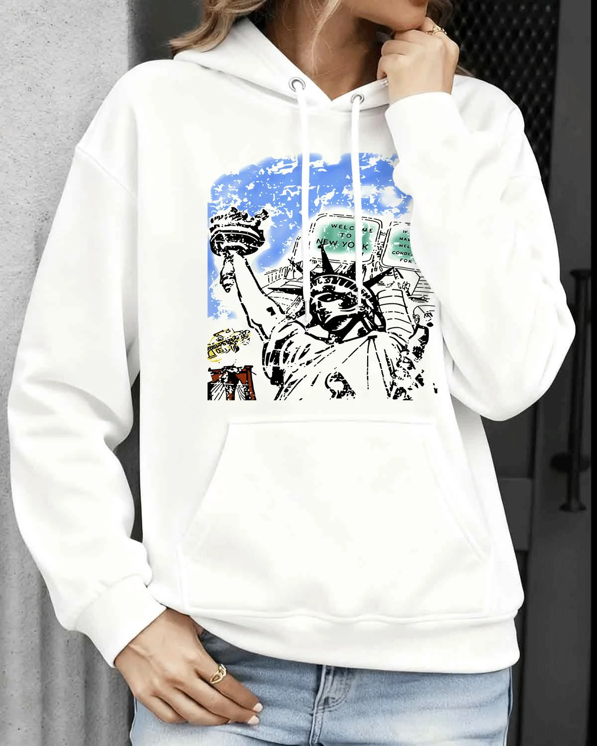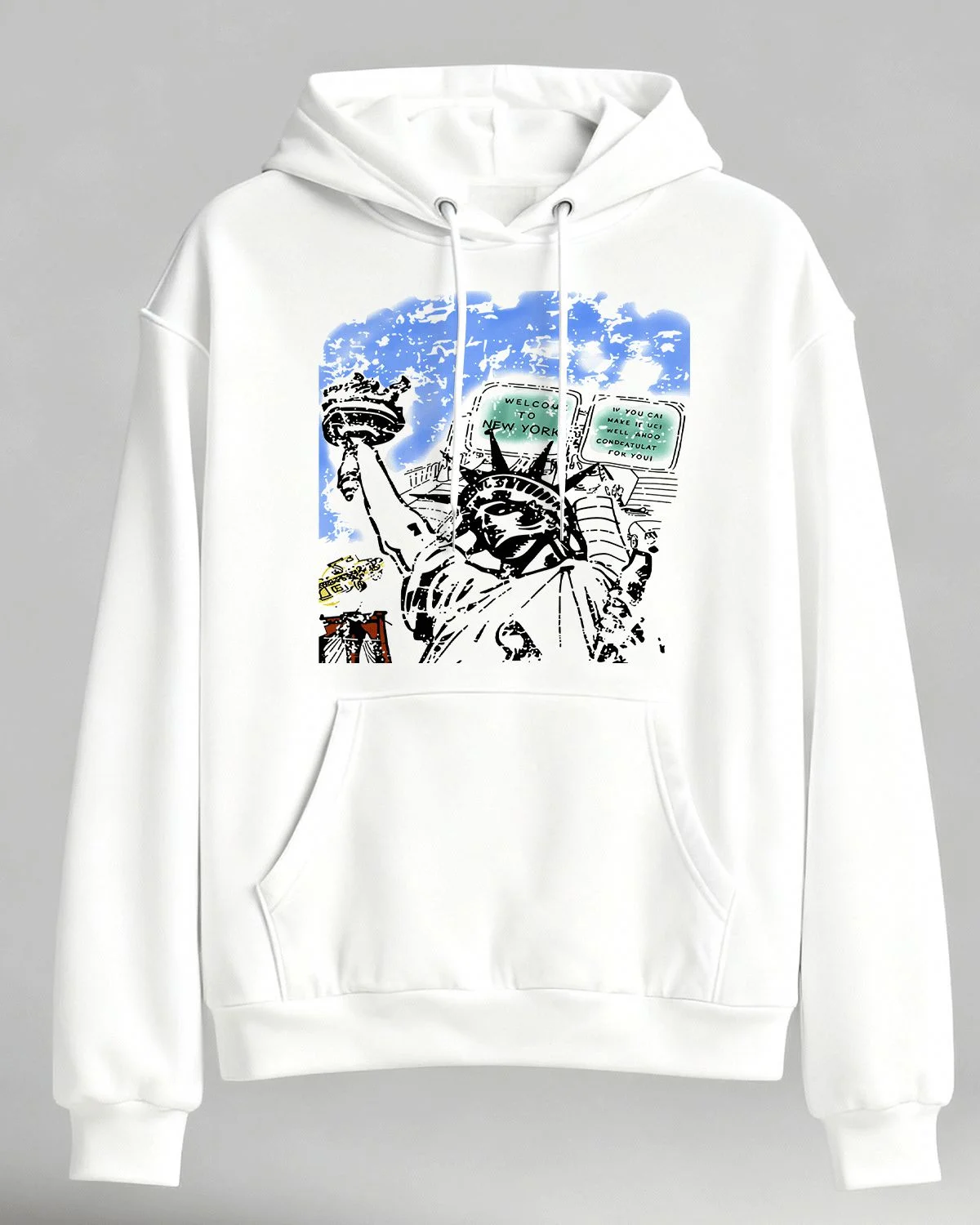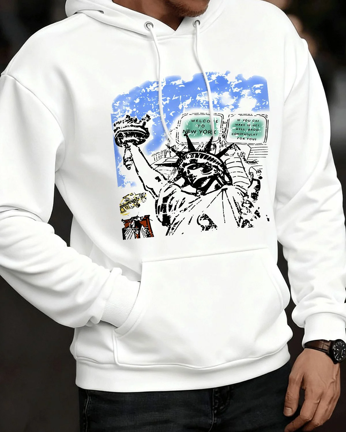 Welcome to New York Cozy Cotton Graphic Hoodie with Pocket-Casual Urban,Long Sleeve,Soft Fabric,Comfortable Fit