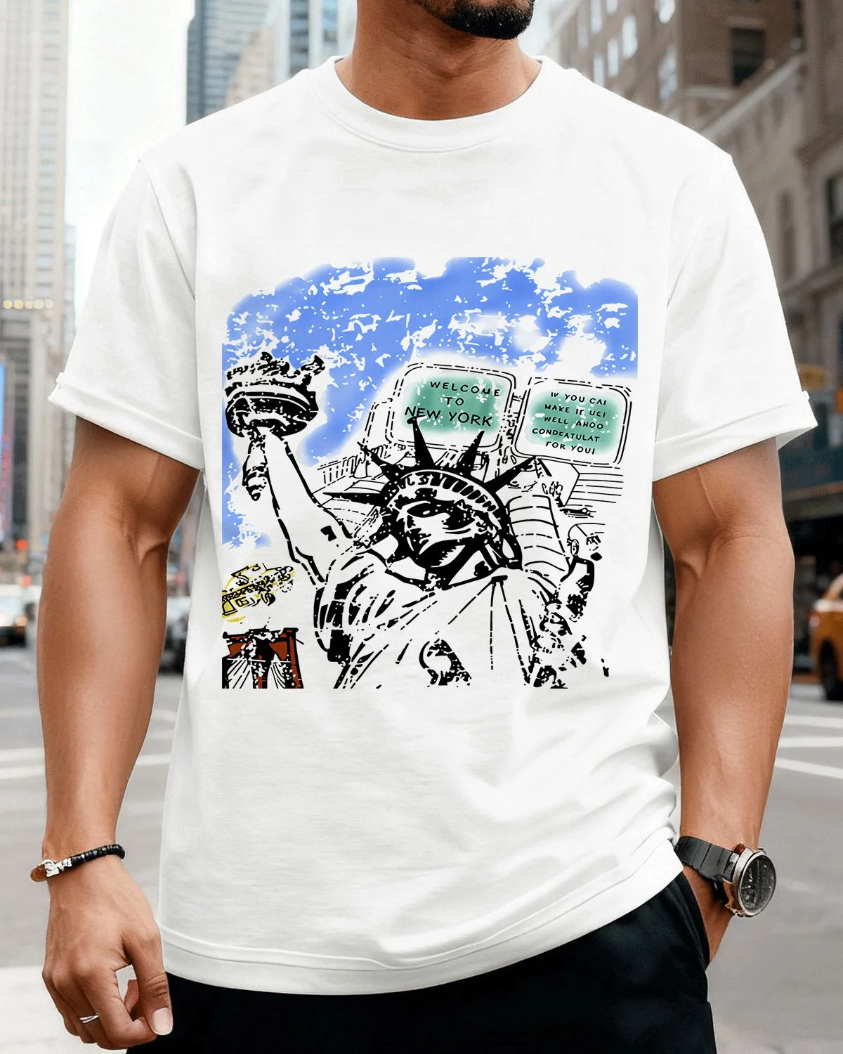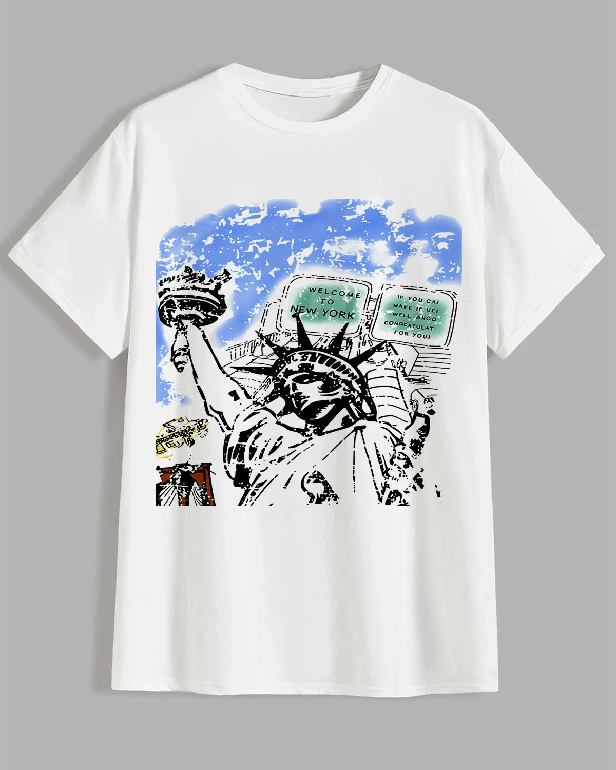 Cowboys at Ranch Summer Cotton Graphic T Shirt - Vintage Retro,Short Sleeve,Soft Fabric,Comfortable Fit