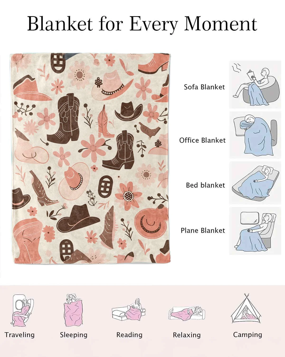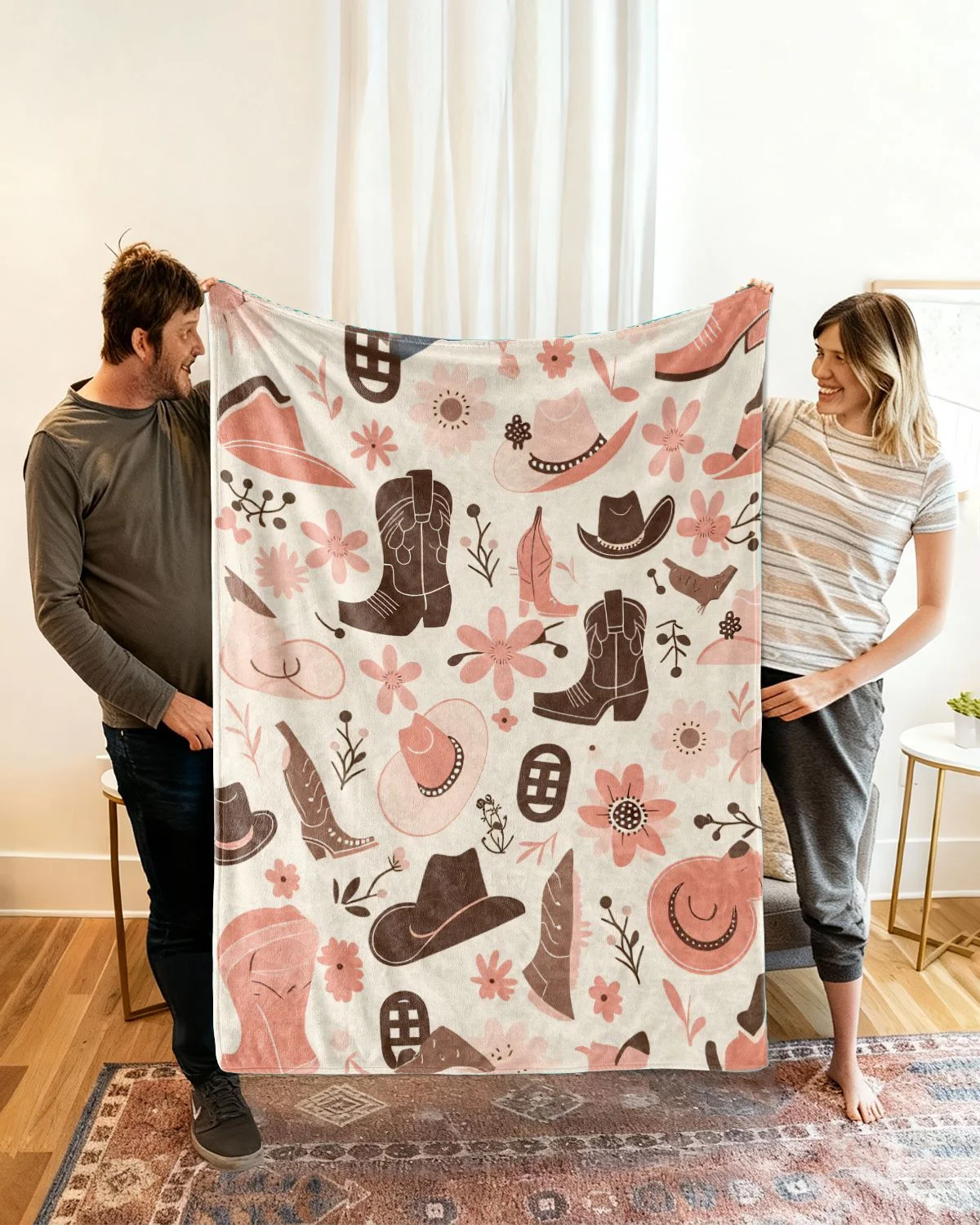 Western Cowboy Love Gift Blanket-Cozy Classic,Warm,Plush,Durable,For Couch,Bedroom Use