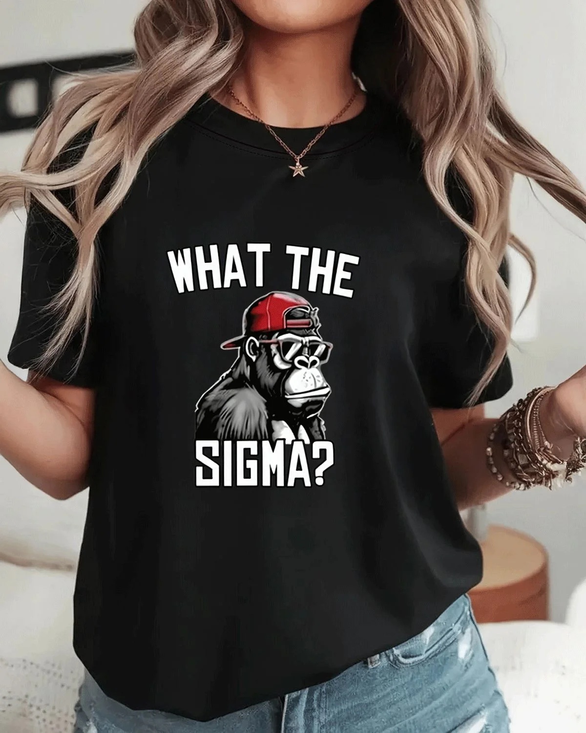 What The Sigma Gorilla Summer Cotton Graphic T Shirt - Casual Retro,Short Sleeve,Soft Fabric,Comfortable Fit