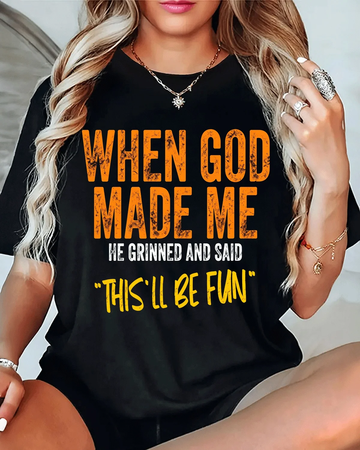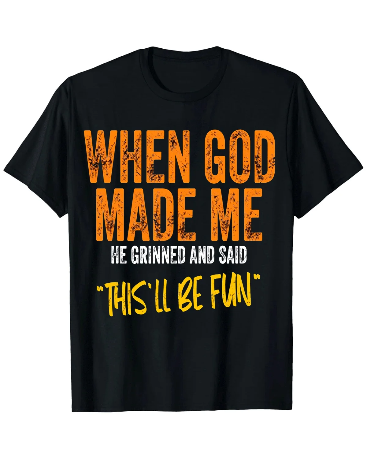When God Made Me This'll Be Fun Summer Cotton Graphic T Shirt-Casual Vintage,Short Sleeve,Soft Fabric,Comfortable Fit