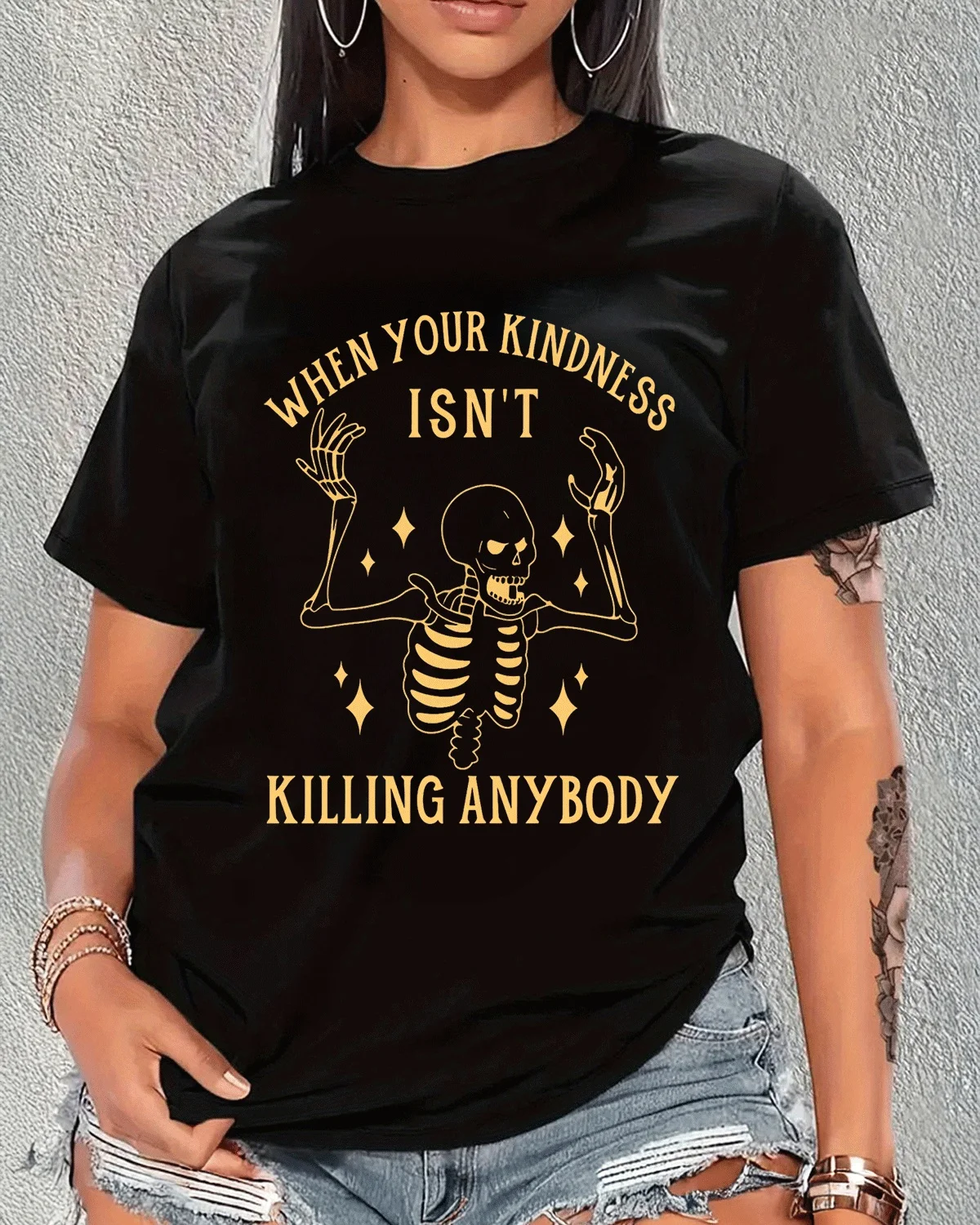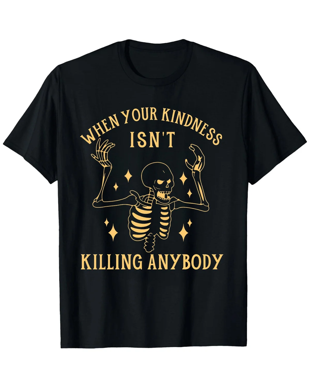 When Your Kindness Isn't Killing Anybody Skeleton Summer Cotton Graphic T Shirt-Casual Retro,Short Sleeve,Soft Fabric,Comfortable Fit