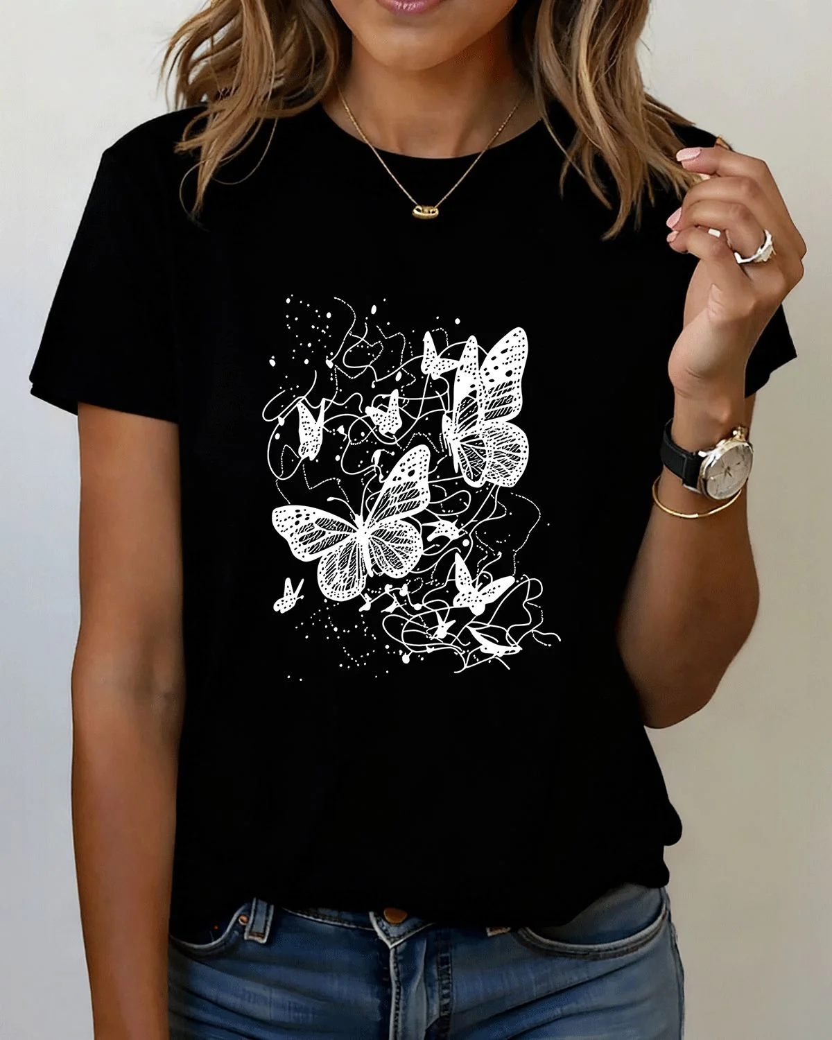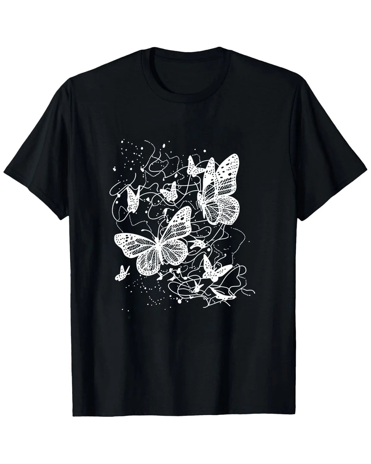 White Abstract Butterfly Art Summer Cotton Graphic T Shirt - Artistic Vintage,Short Sleeve,Soft Fabric,Comfortable Fit