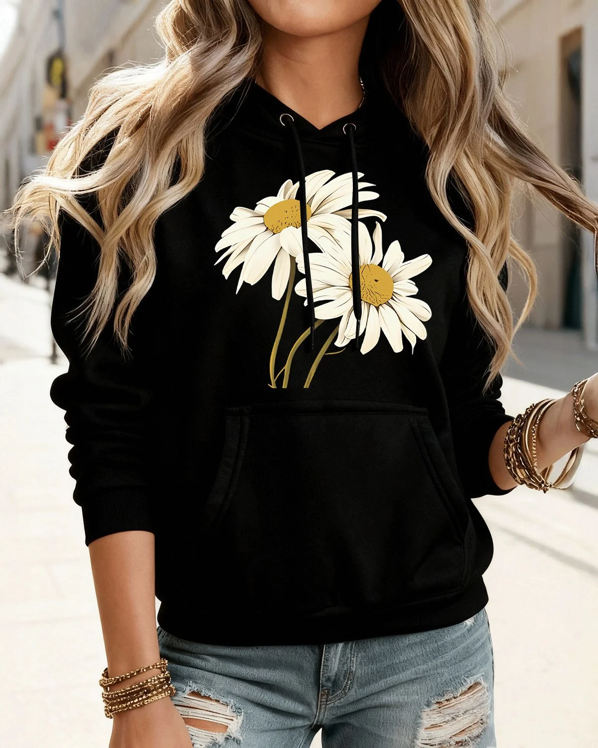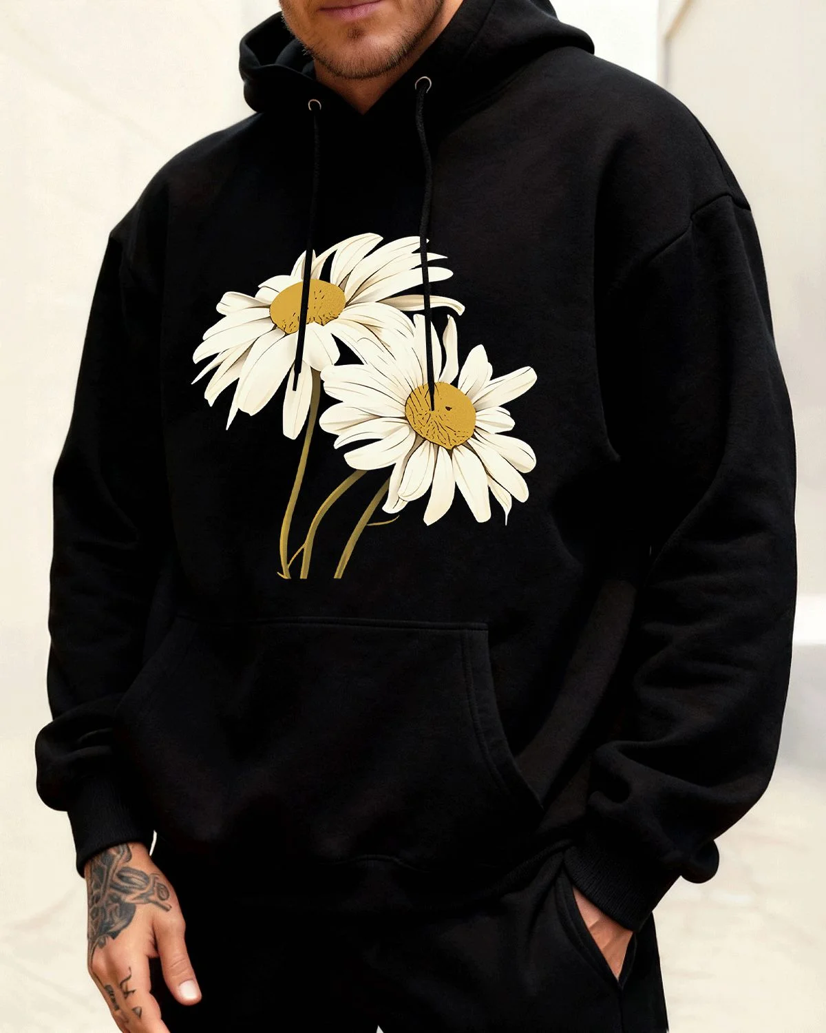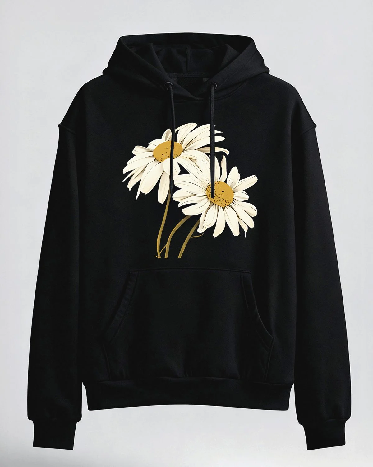 White Daisy Bouquet Cozy Graphic Hoodie for Men and Women - Vintage Artistic, Long Sleeve, Soft Fabric, Comfortable Fit