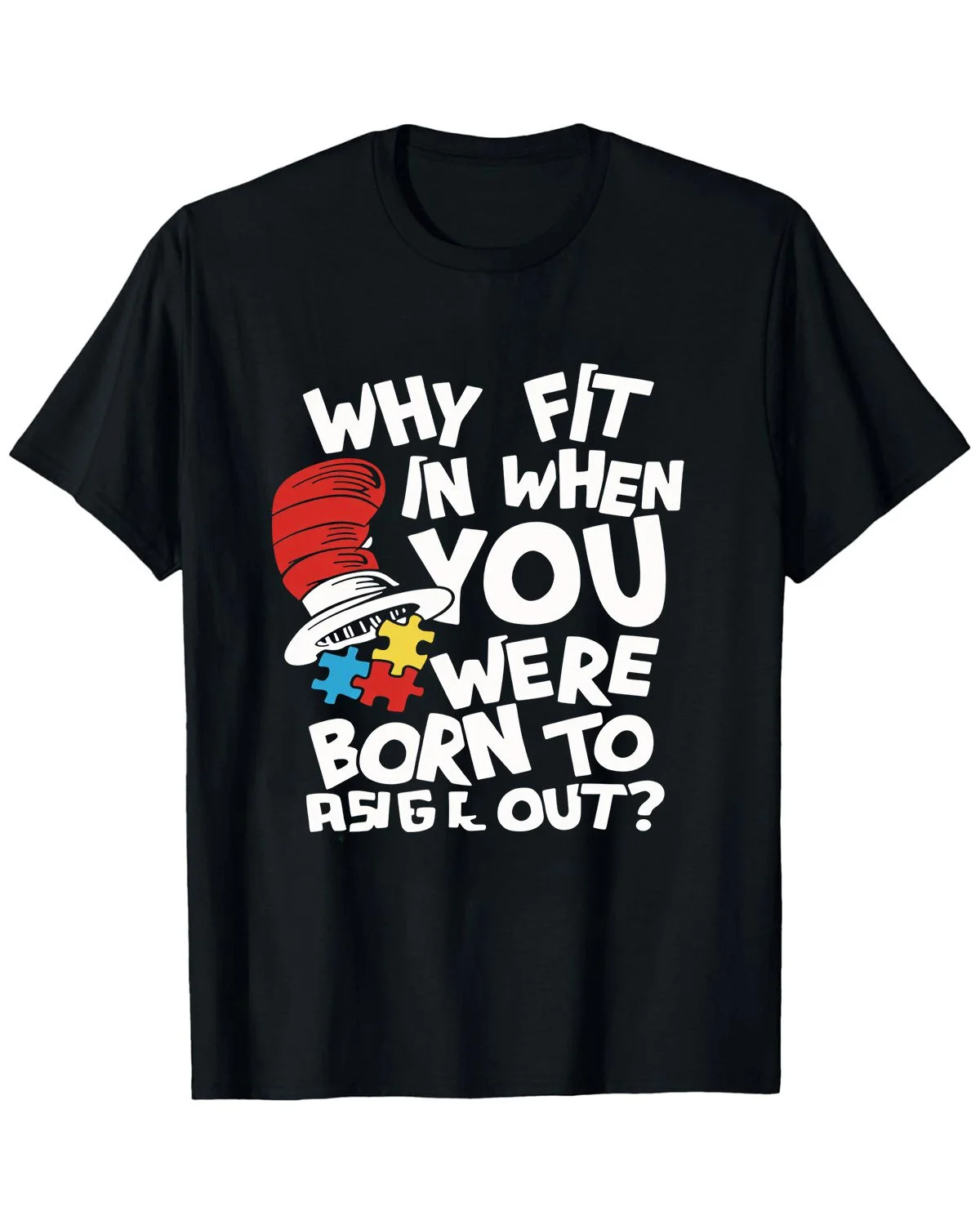 Why Fit In When You Were Born To Stand Out Puzzle Hat Summer Cotton Graphic T Shirt - Casual Vintage,Short Sleeve,Soft Fabric,Comfortable Fit