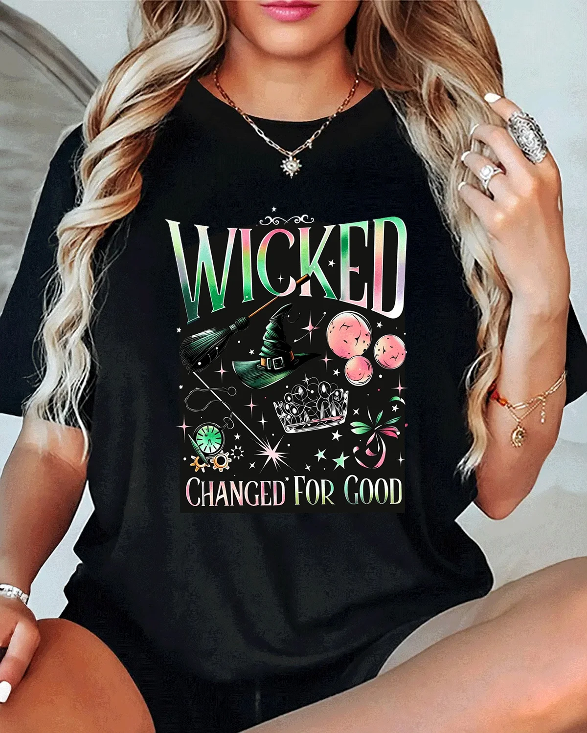 Wicked Changed For Good Summer Cotton Graphic T Shirt-Vintage Artistic,Short Sleeve,Soft Fabric,Comfortable Fit