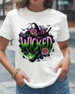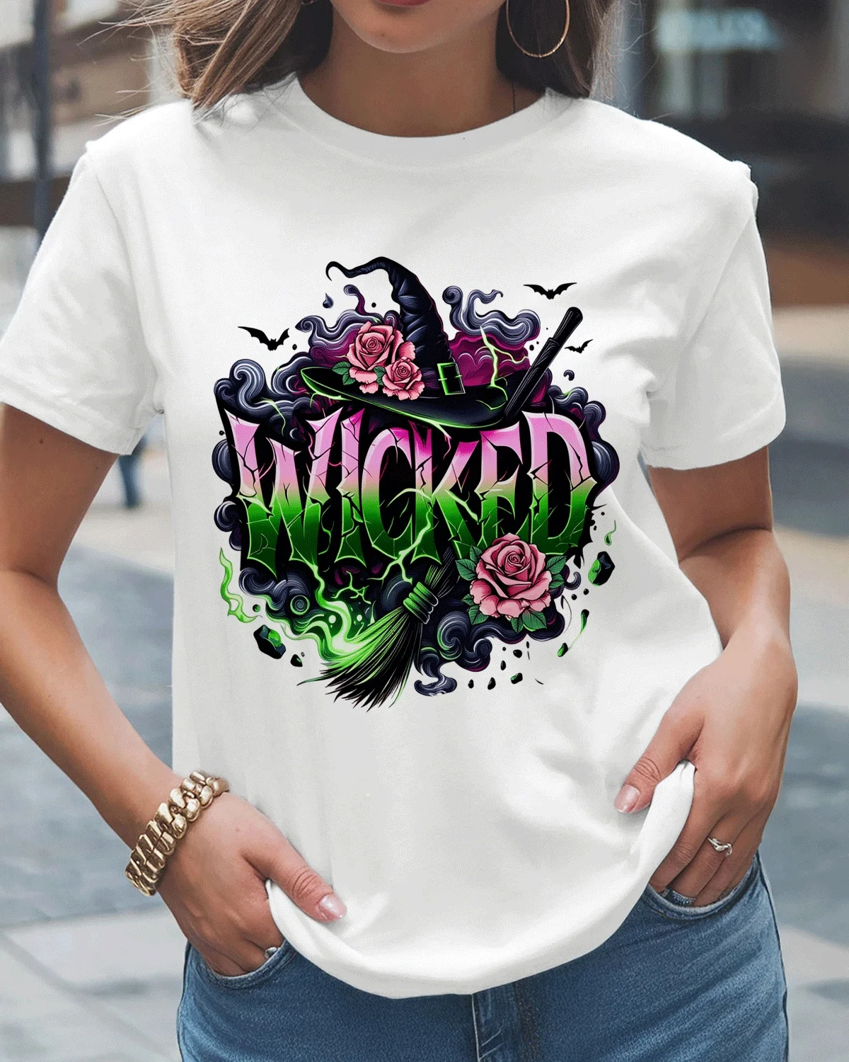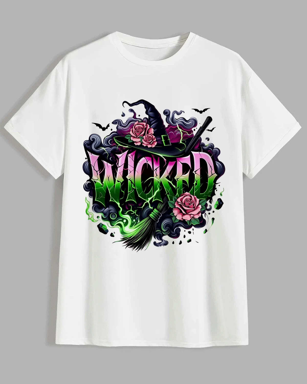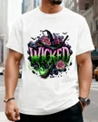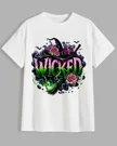 Wicked Witch Hat Roses and Broom Summer Cotton Graphic T Shirt-Vintage Artistic,Short Sleeve,Soft Fabric,Comfortable Fit