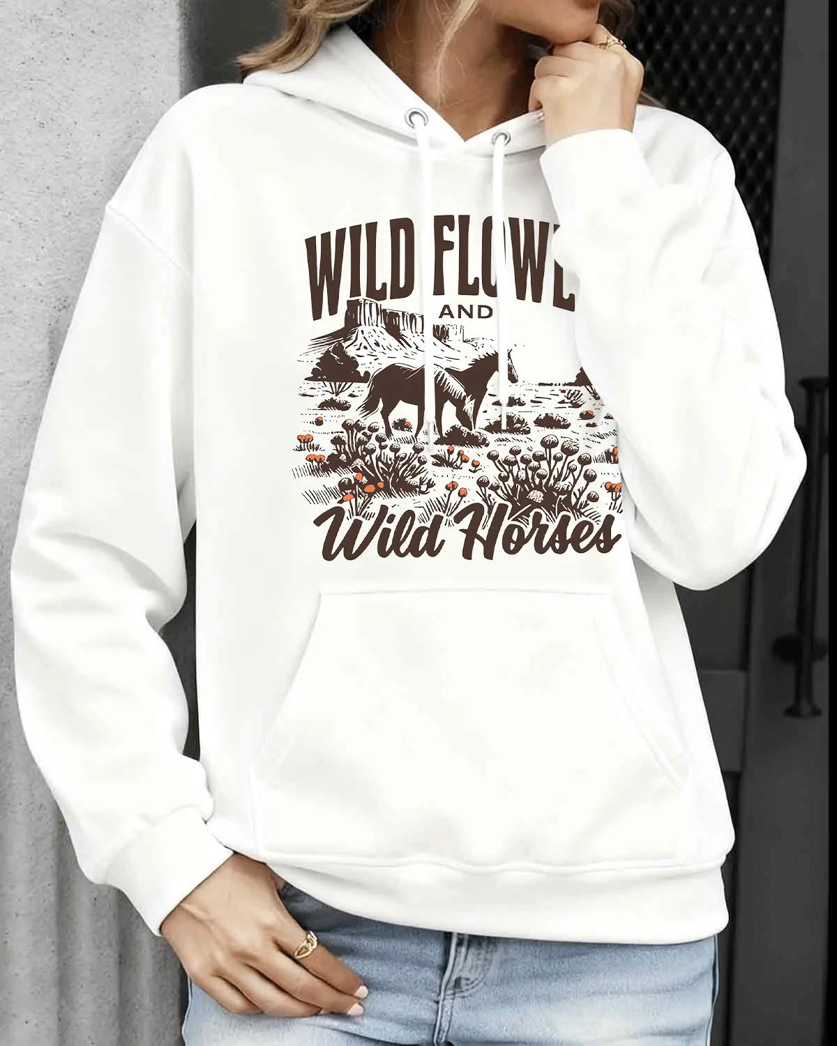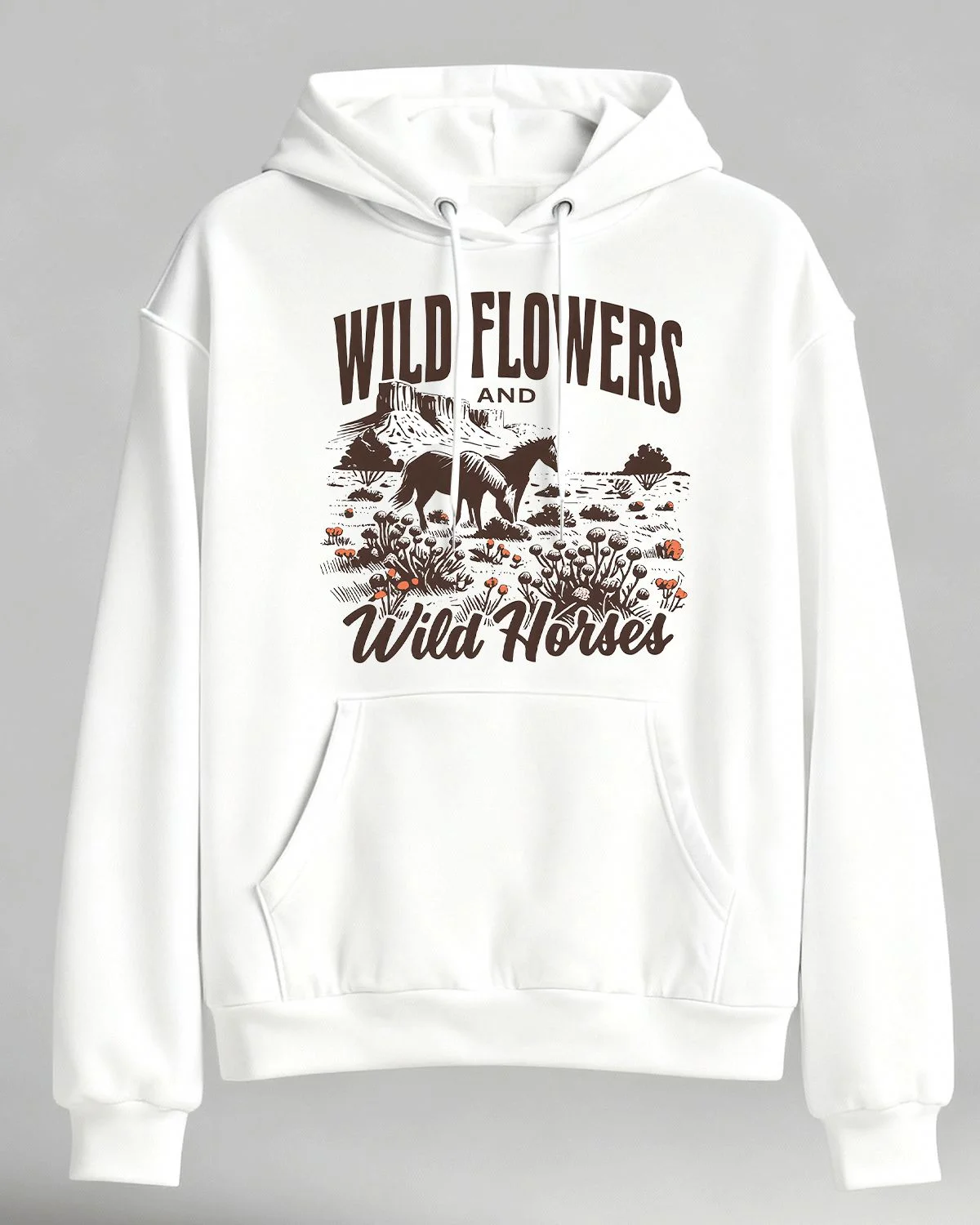 Wild Flowers and Wild Horses Cozy Graphic Hoodie for Men and Women - Vintage Retro, Long Sleeve, Soft Fabric, Comfortable Fit